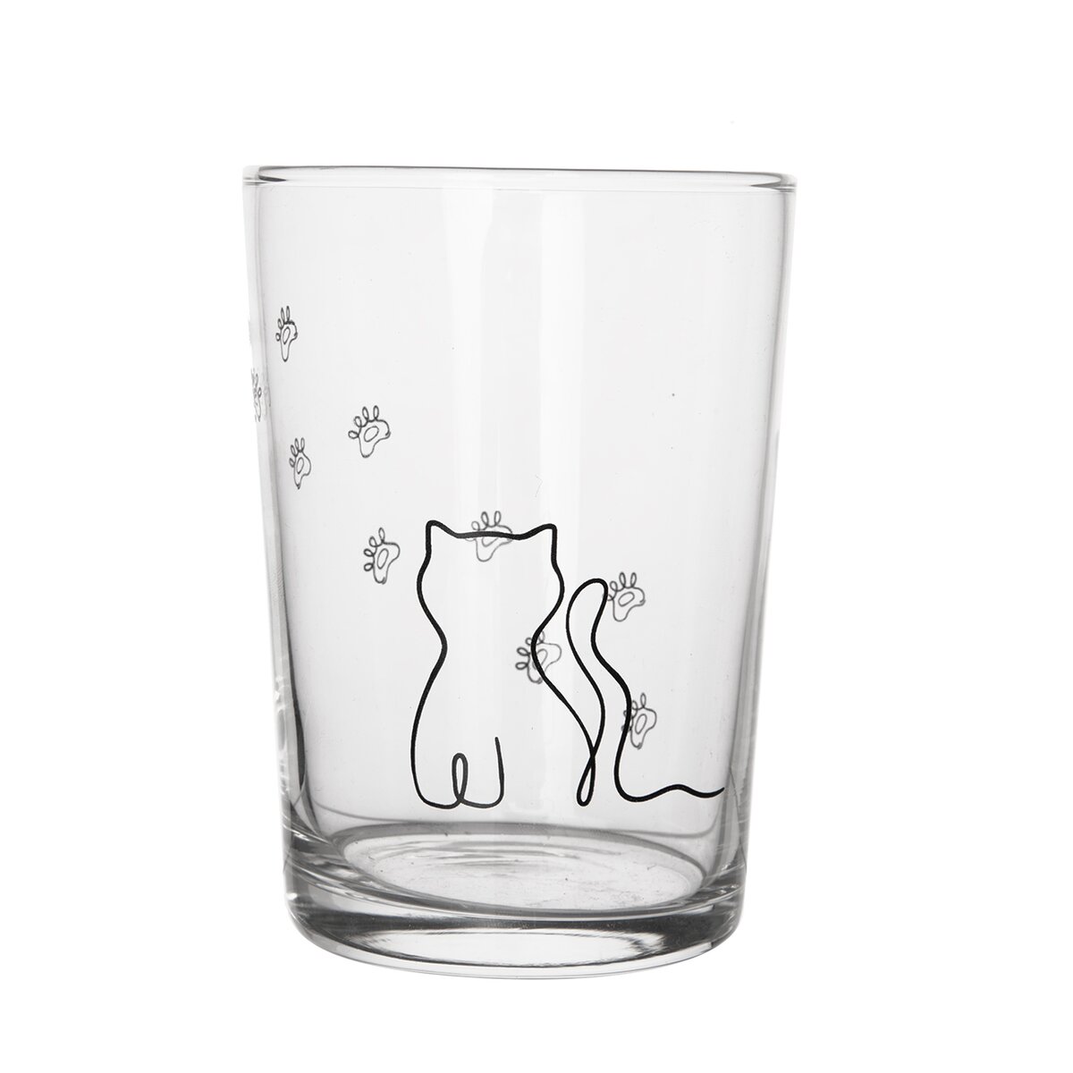 Tuto sklenici zdobí dekor kočičky, kreslené v jednom tahu, která je dílem našich designérů.