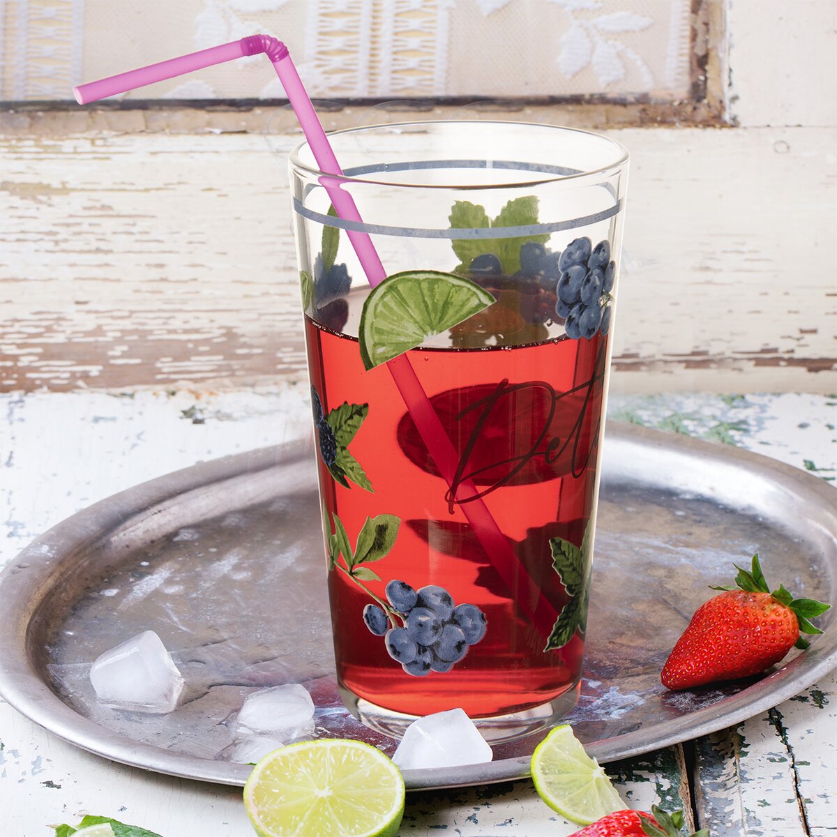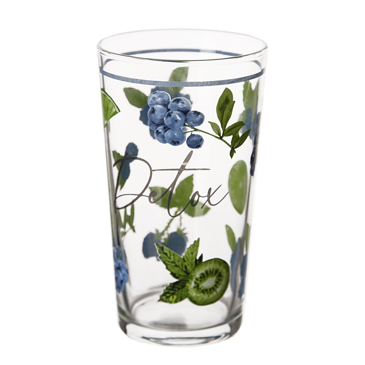 Vysoká sklenice s krásným barevným dekorem plným borůvek a citrusů se hodí nejen na osvěžující letní drinky nebo smoothie. Neztratí se ani u snídaně nebo při podvečením posezení na terase nebo s přáteli na zahradě.