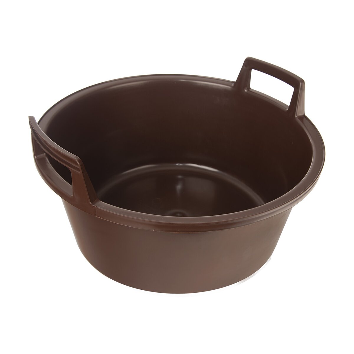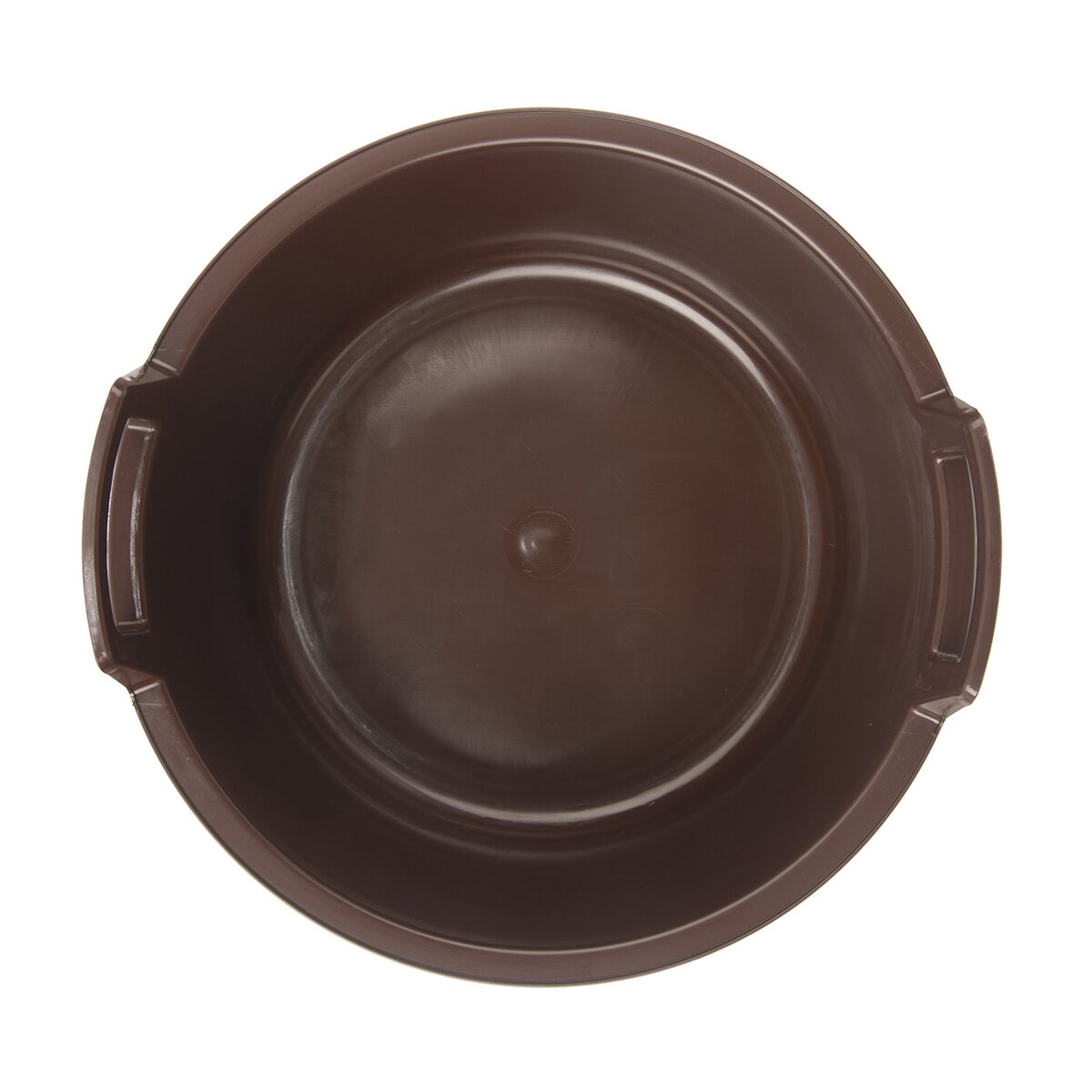Kód produktu 721004Hnědý plastový škopek průměru 43 cm, s pevnými držadly pro snadné přenášení. Široké použití doma, na zahradě, na chalupě i dovolené.