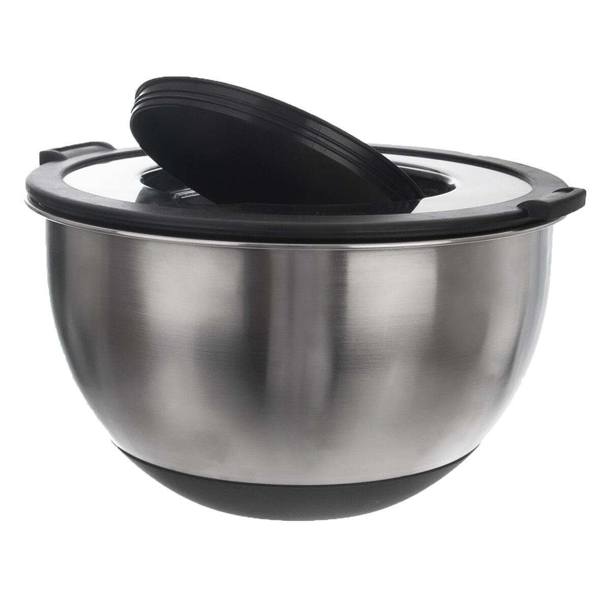 Kód produktu 120293Kvalitní kulatá nerezová mísa objemu 3 l, s průhledným plastovým víčkem a s oddělávacím středem, které usnadní šlehání, zamezí stříkání těsta. Má praktické protiskluzové silikonové dno.
