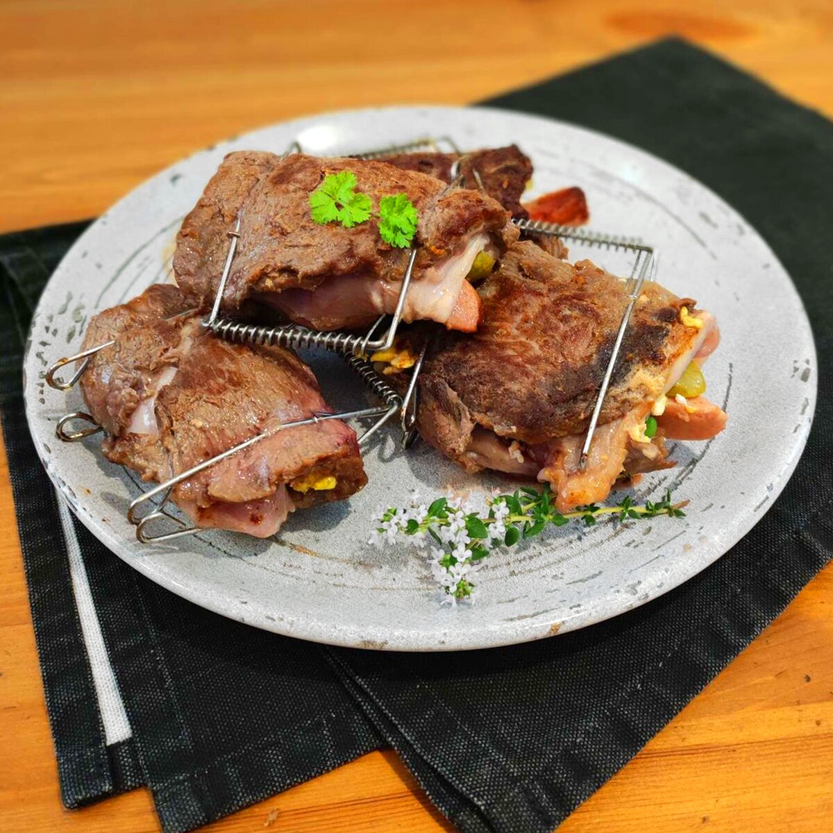 Příprava špaňelských ptáčků z hovězího masa, kapustových závitků nebo miniroládek z masa či zeleniny může být jednodušší. Nerezovou sponu stačí jednoduše rozevřít a do prohnutých ramínek upevnit závitek.