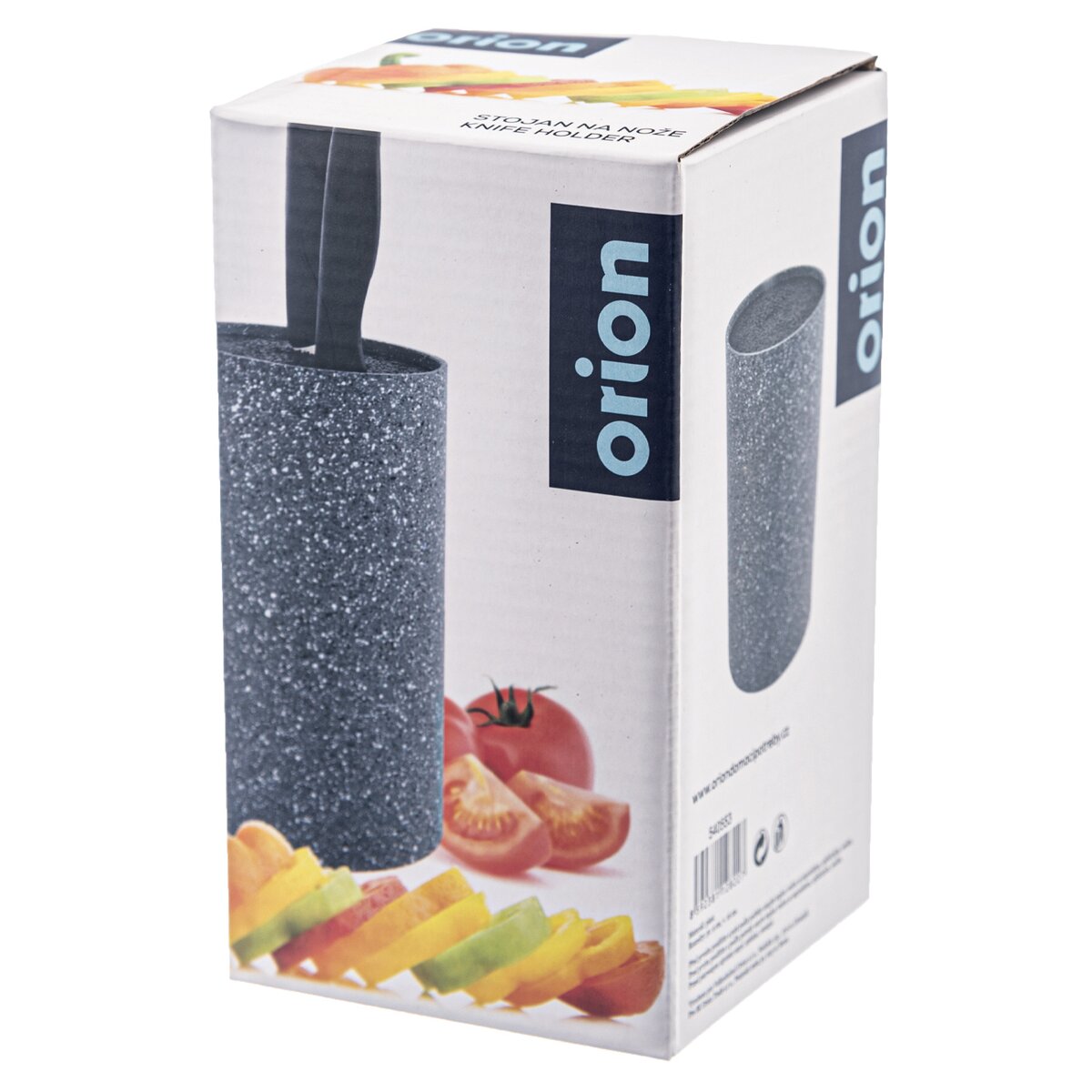 Kód produktu 540553Kulatý plastový stojan na nože pr. 9 cm vzhledu mramoru se syntetickými štětinami k uložení kuchyňských nožů i nůžek.
