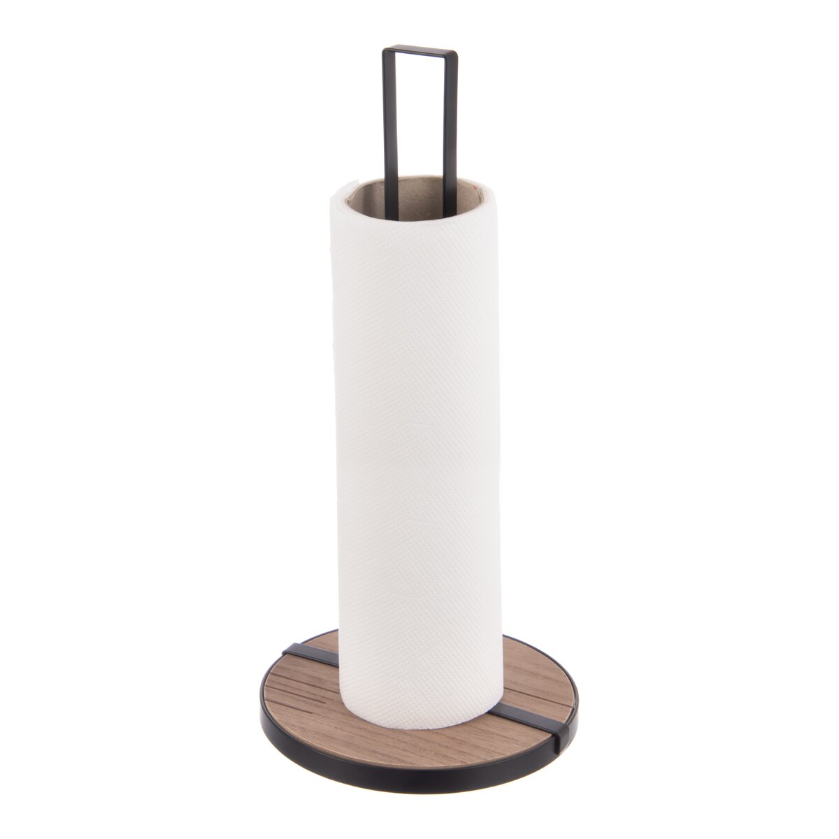 Stojan na papírové utěrky zajistí, že budou mít své stálé místo na kuchyňské lince nebo u stolu. Je kombinací dřevovláknité desky MDF a základny s tyčí z kovu s černým nástřikem.