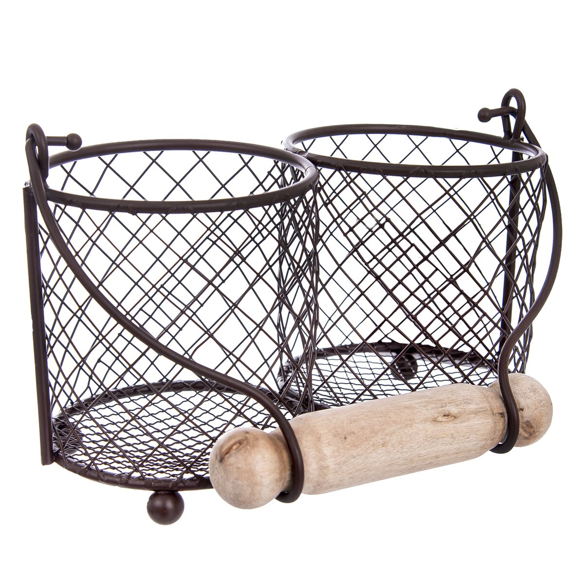 Stojan na příbory bude vypadat skvěle v moderní i klasické kuchyni. Využijete ho také při servírování na terase nebo zahradě, při grilování. Díky sklopnému uchu příbory snadno přenesete a budou hostům hned k dispozici. Materiál: drát s povrchovou úpravou, dřevo. Rozměry: 21x10x17 cm.
