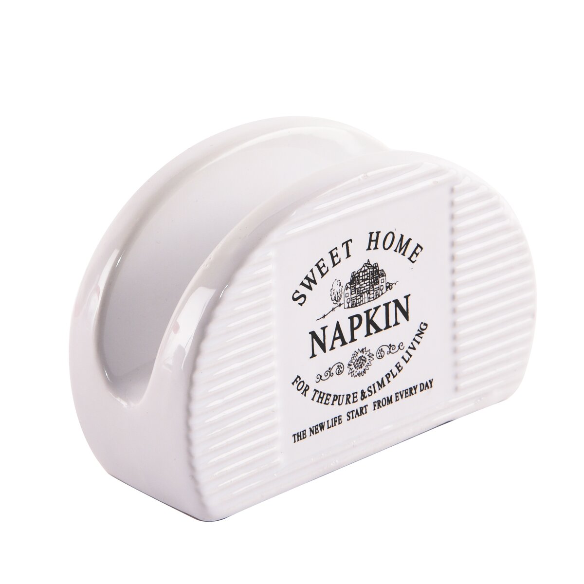 Stojan na ubrousky. Barva bílá, dekor SWEET HOME. Materiál: keramika. Rozměry: 11x4,5x7 cm.