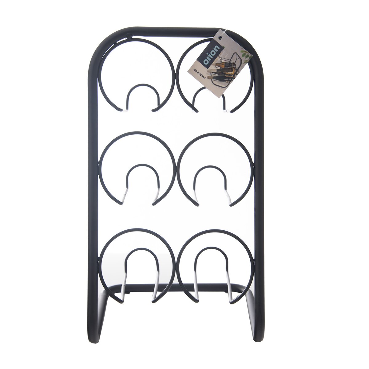 Kód produktu 540602Černý kovový stojan RADKA na víno, sloužící k uložení až 6 lahví o objemu 0,75 l v domácnosti.