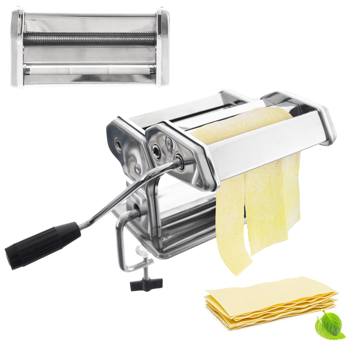 S jeho pomocí vyválíte lehce zavadlé nudlové těsto v šíři až 15 cm. Samotnou tloušťku těsta lze regulovat otočením bočního kolečka s 9 stupni od základní šíře až po tenké, skoro průhledné pásy těsta. Takto připravené pláty jsou připravené na další zpracování.