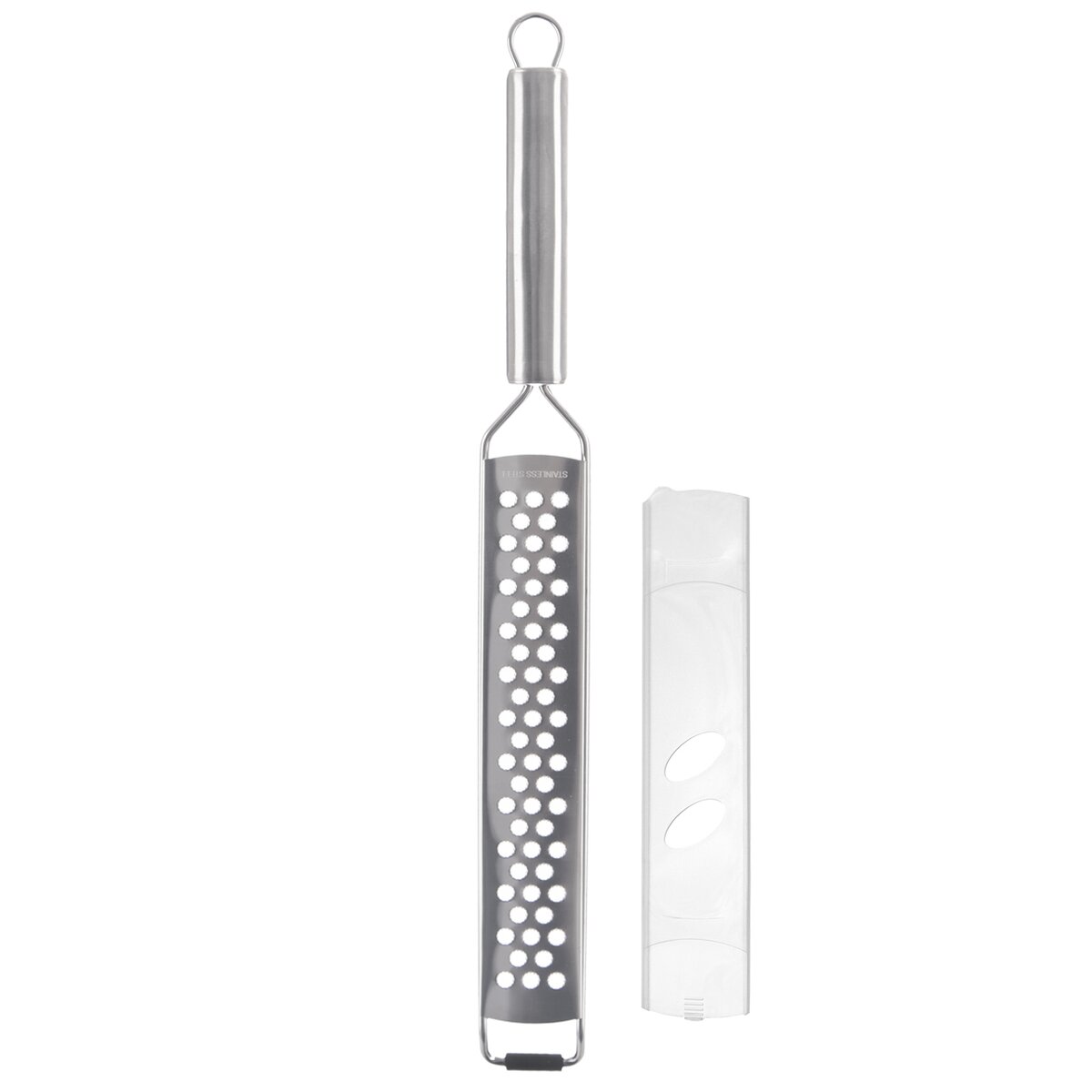 Kód produktu 144809Korunkové nerezové struhadlo délky 37,5 cm je vhodné ke strouhání jablek, zázvoru, křenu, tvrdého sýra, citronové kůry i čokolády. Doplněno krytem pro bezpečné uložení do zásuvky.