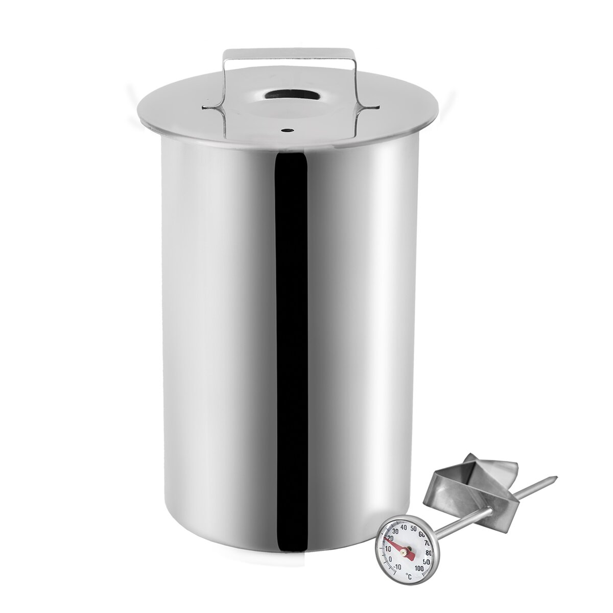 Kód produktu 131517Nerezový šunkovar o průměru 10 cm, s víčkem opatřeným pružinou a s teploměrem, ideální pro přípravu a vaření cca 1 kg domácí šunky. Lze jej mýt v myčce nádobí.