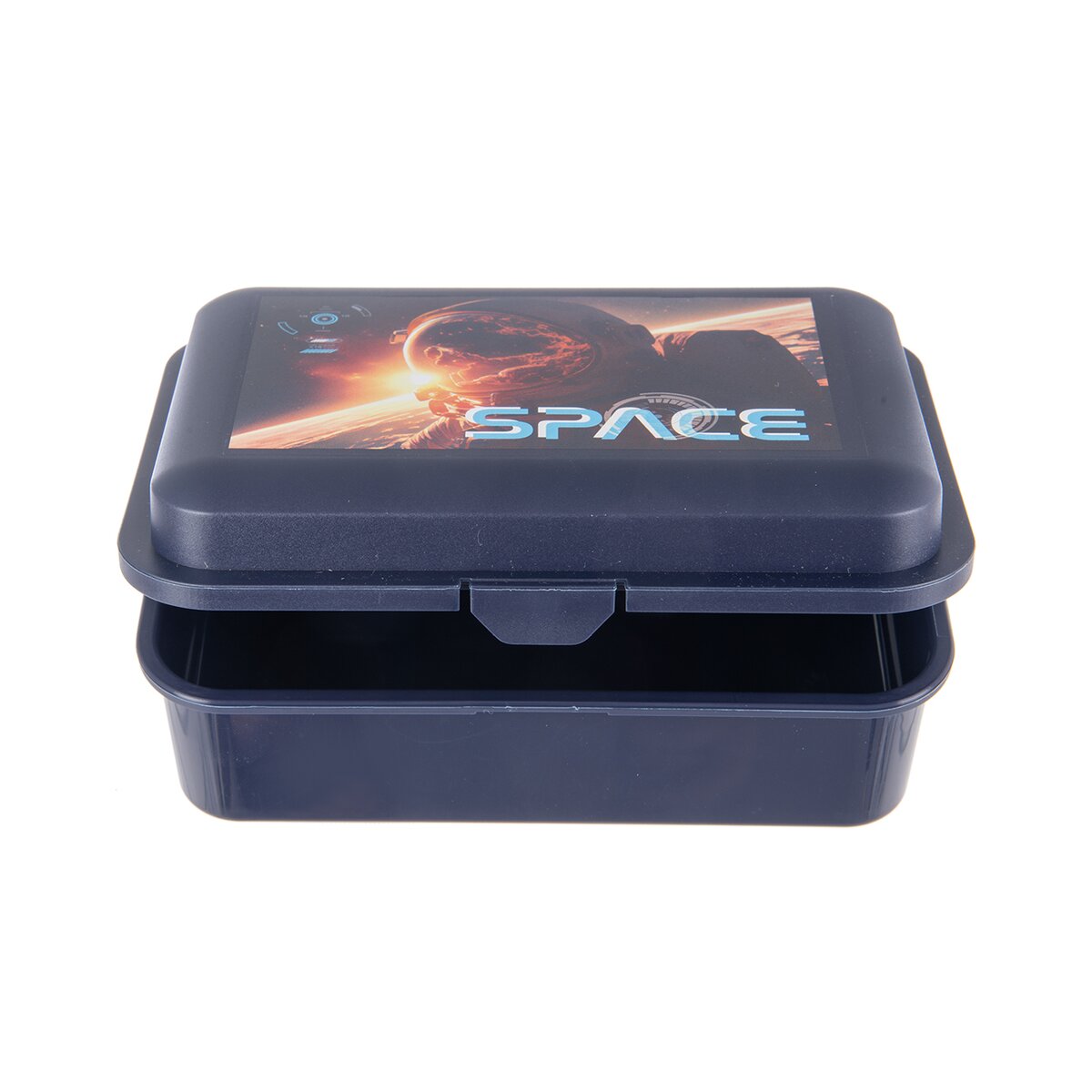 Kód produktu 154071Plastový svačinový box o rozměrech 18x13x7 cm je určen k uložení svačiny pro školáky, studenty i pracující. Má odklápěcí víčko s přezkou a zajímavý motiv s astronautem.