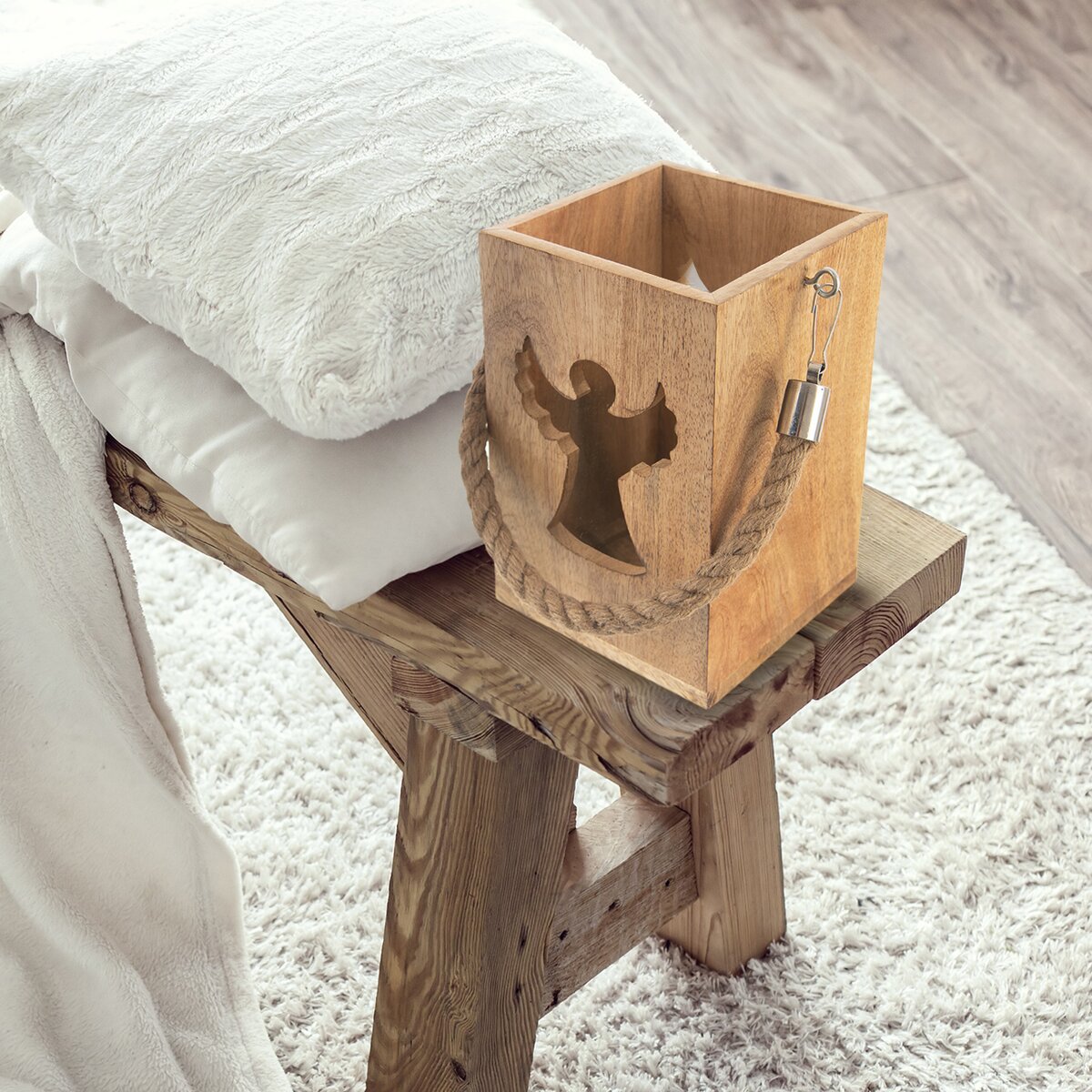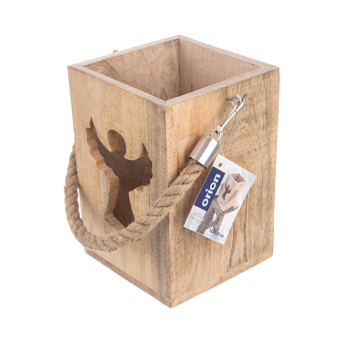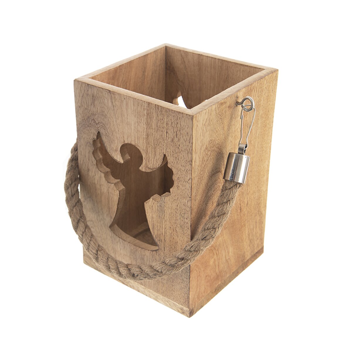 Více informacíKrásný svícen z mangového dřeva, který je doplněn silným jutovým provazem vhodným k zavěšení. Dovnitř lze umístit svíčku nebo led osvětlení, světlo z něho proniká vyfrézovaným otvorem ve tvaru anděla. Tato okouzlující lucerna bude krásným prvkem v interiéru, ale udělá velkou parádu i na terase, kde umocní odpočinek se sklenkou vína nebo šálkem kávy v podvečerních hodinách.