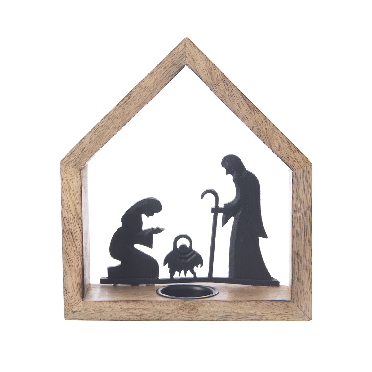Více informacíKrásný svícen z mangového dřeva je doplněn kovovou siluetou Marie, Josefa a právě narozeného Ježíška, díky nimž bude krásným prvkem v interiéru nejen v období Adventu.