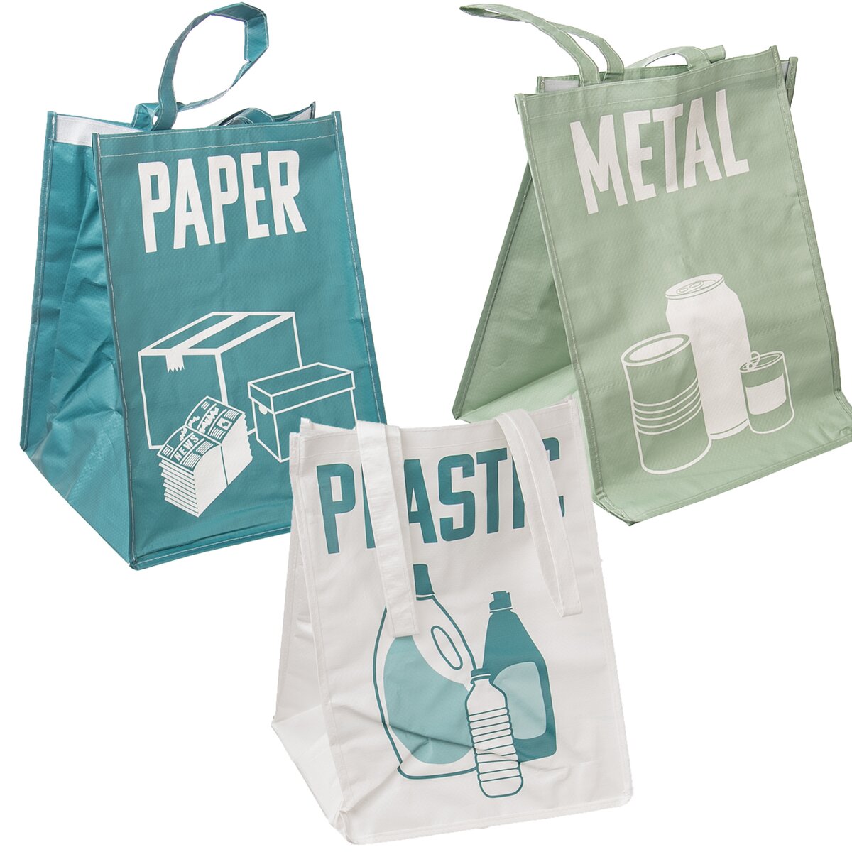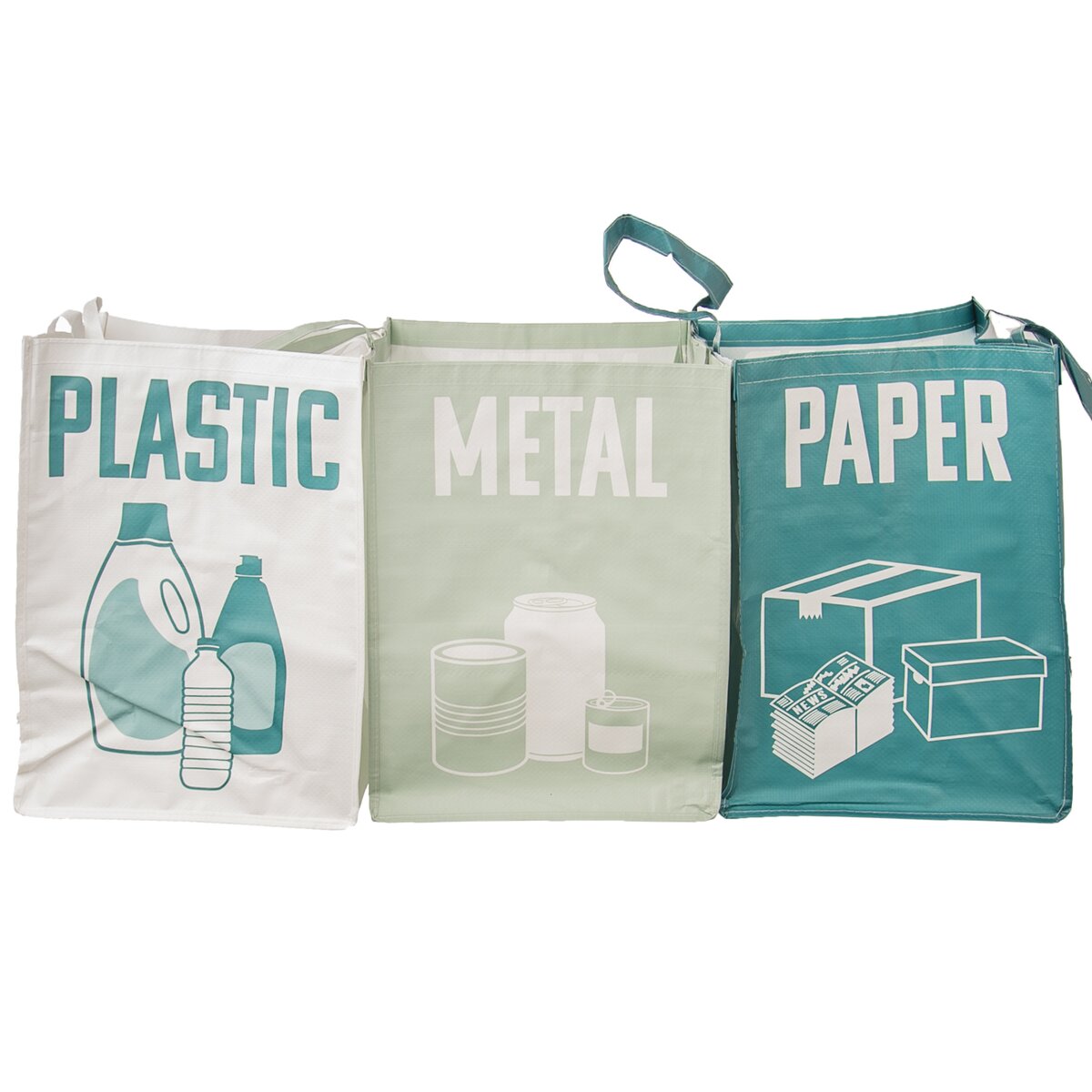 Kód produktu 731416Sada 3 tašek na tříděný odpad, určených na plast, papír a kov. Jsou barevně potištěné, je možné je spojit k sobě pomocí suchého zipu a opatřeny uchy pro snadné vynášení do kontejnerů.