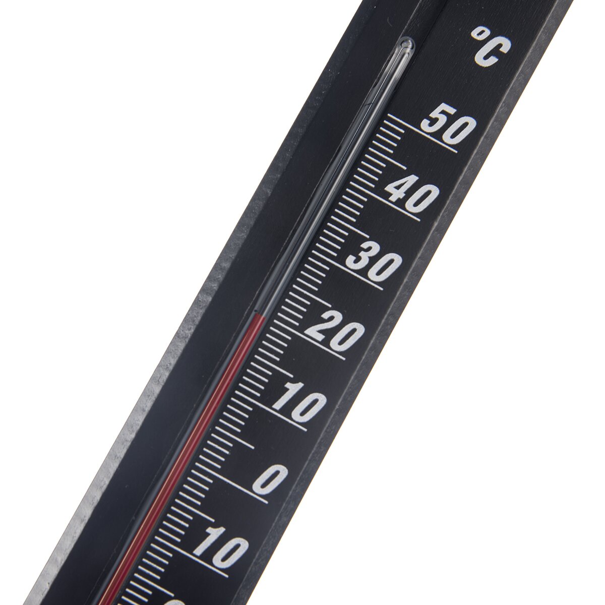 Tento nástěnný dřevěný teploměr v černé barvě se hodí k měření teploty jak ve vnitřních, tak i krytých venkovních prostorech. Má otvor k zavěšení a obsahuje petrolejovou náplň.