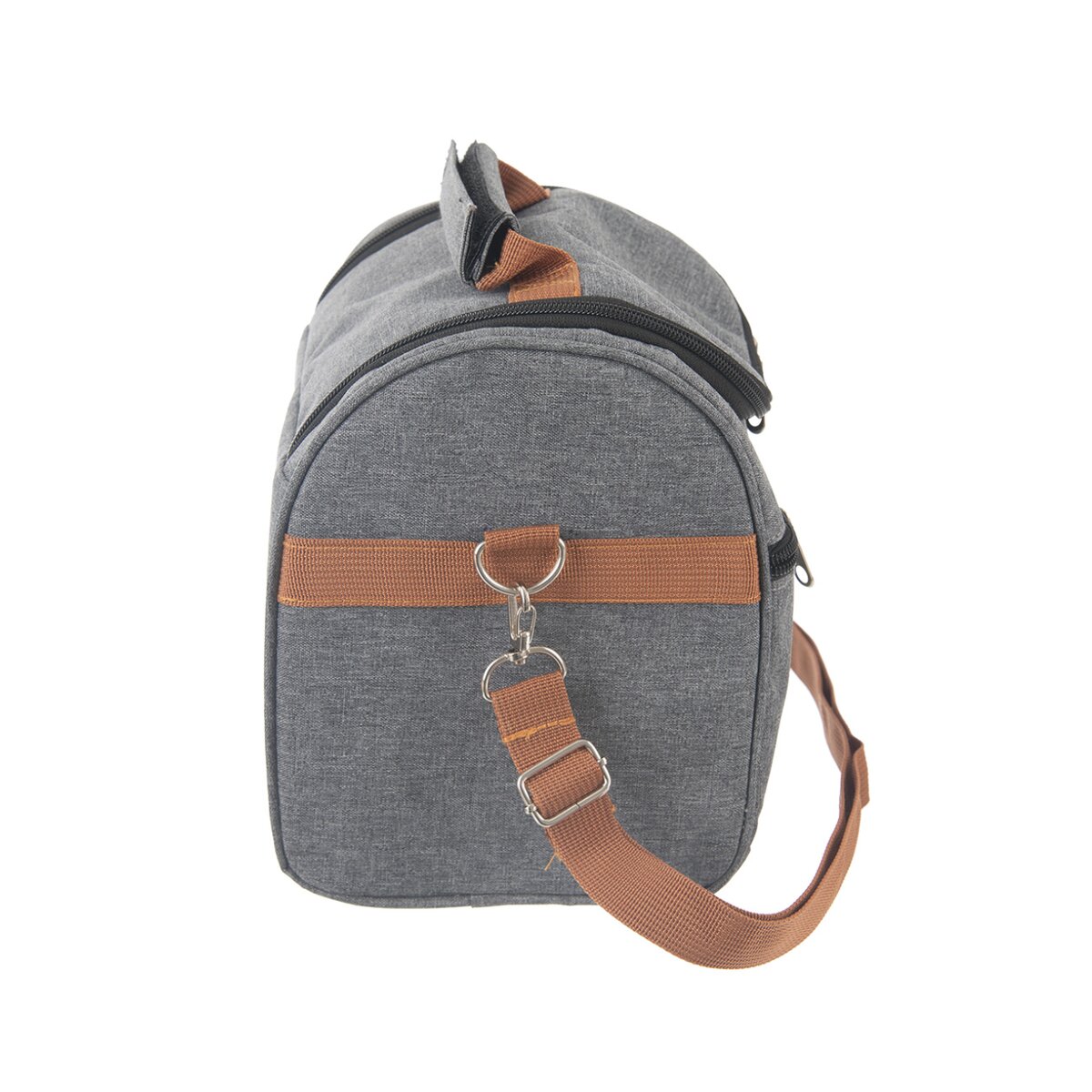 Pohodlně se dovnitř vejdou menší láhve a několik plastových dóz, které vyskládáte na sebe. Brašnu stačí uzavřít zipem, snadné přenášení zajistí praktické ucho i nastavitelný popruh z pěnového polyethylenu. Můžete ji tak nést v ruce i na rameni. Textilie v kombinaci polyesteru a polyuretanu je odolná a praktická na údržbu, v případě znečištění ji stačí otřít vlhkým hadříkem.