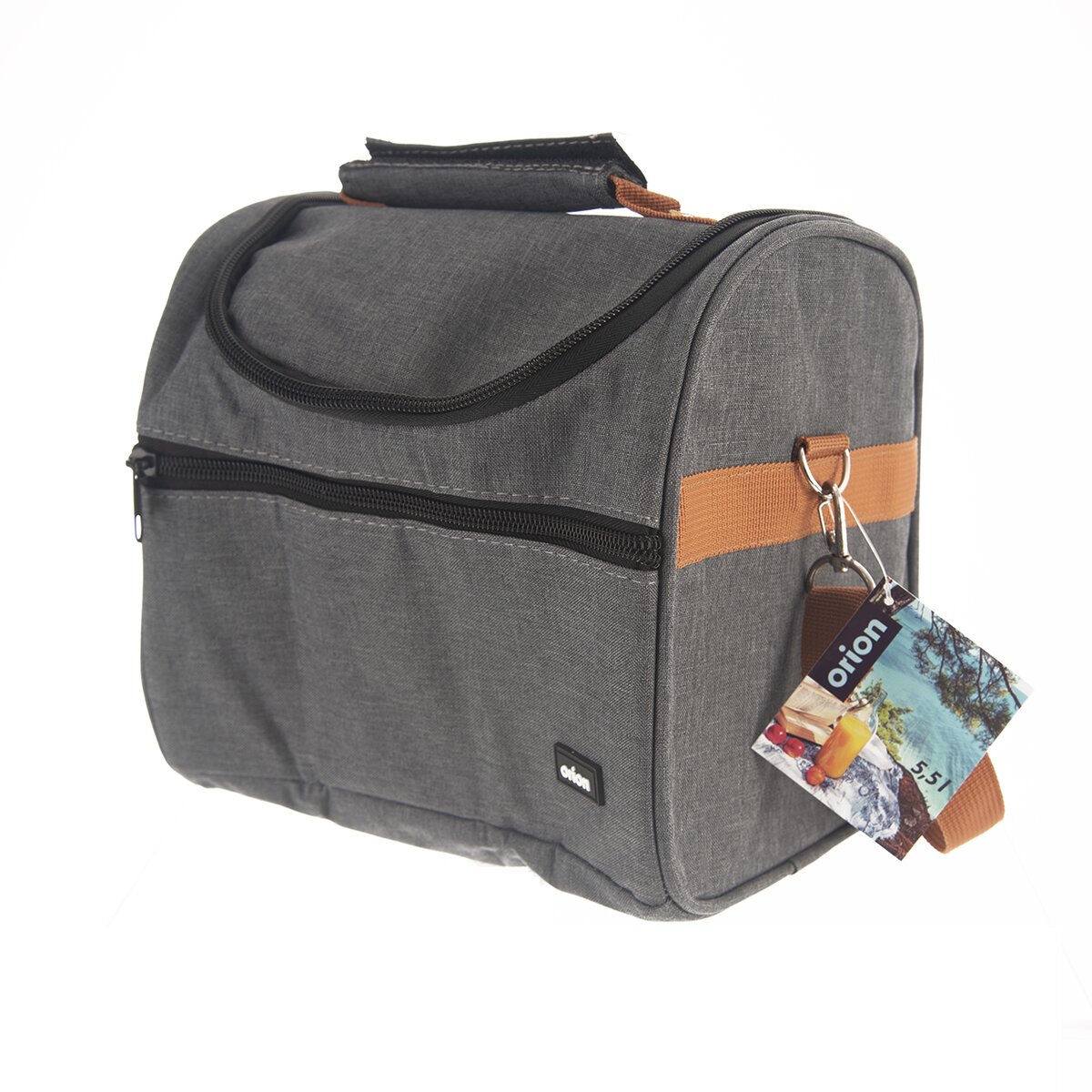 Kód produktu 731423Šedá termobrašna o objemu 5,5 litrů, s přední kapsou, uchem, popruhem a zavíráním na zip, udrží vaše jídlo a nápoje déle v požadované teplotě díky vnitřní termoizolační vložce.