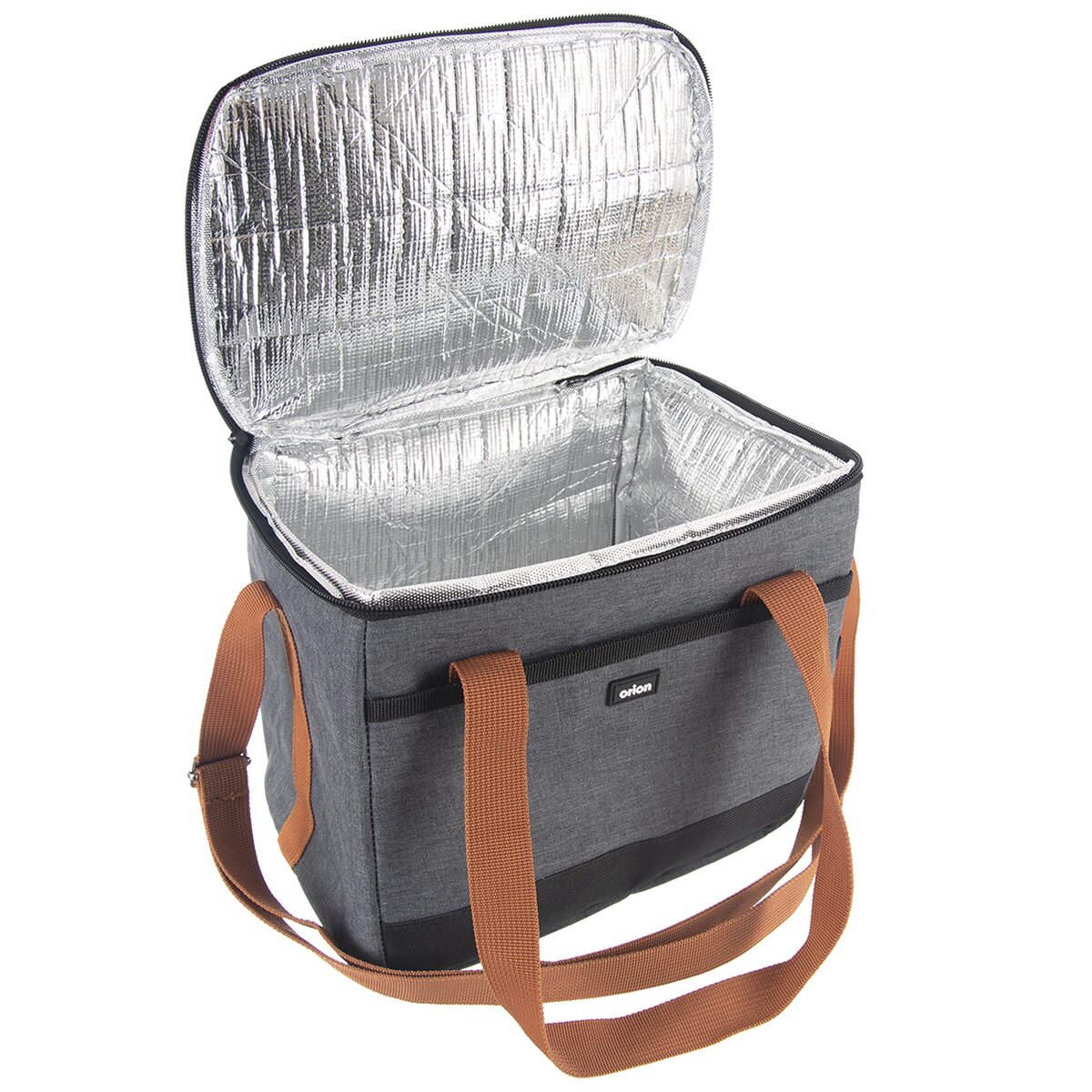 Kód produktu 731425Šedá termobrašna o objemu 8 litrů, se dvěma kapsami, uchy, popruhem a zavíráním na zip, udrží vaše jídlo a nápoje déle v požadované teplotě díky vnitřní termoizolační vložce.