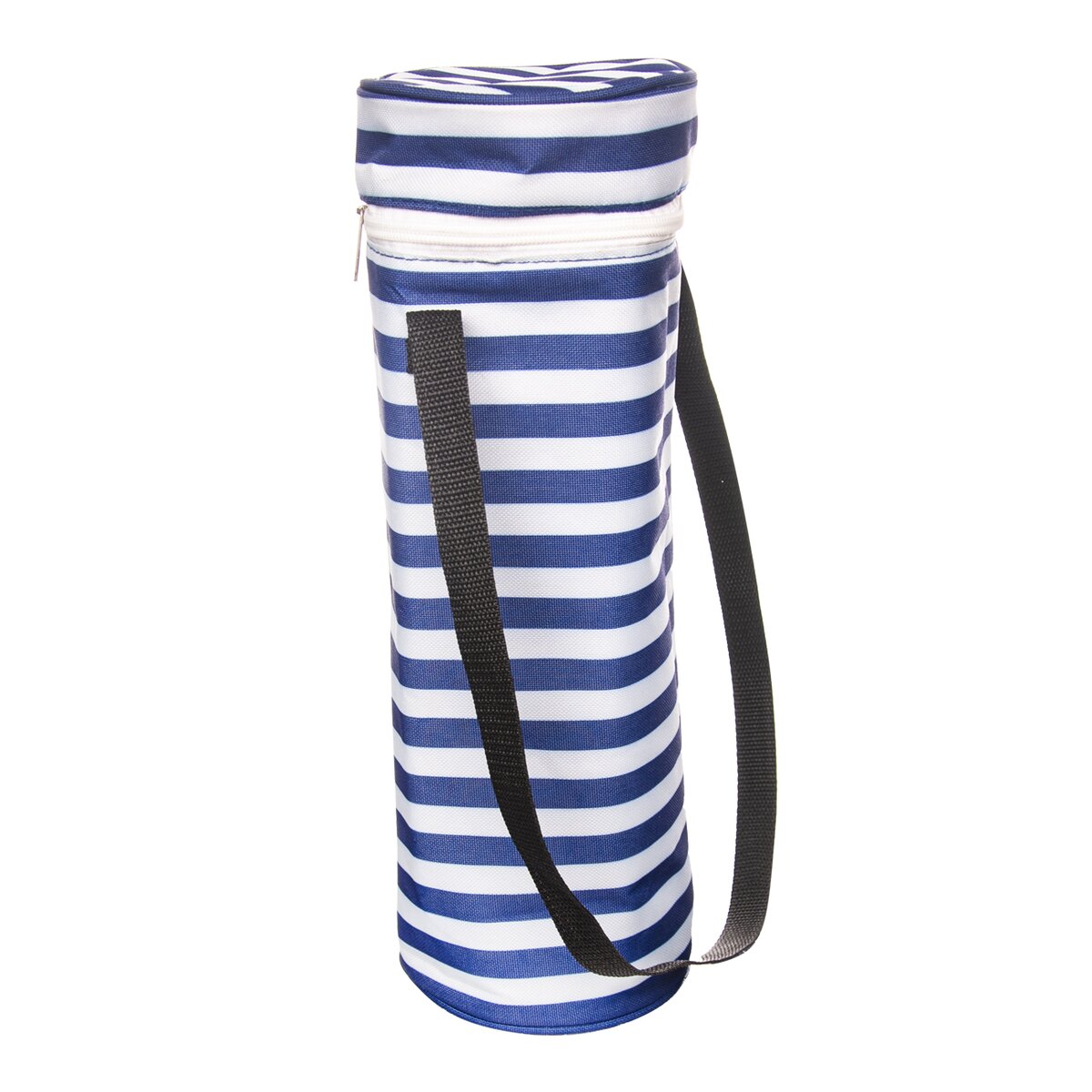 Kód produktu 731407Tmavě modrá pruhovaná termobrašna na láhev či kulaté dózy o průměru do 12 cm.