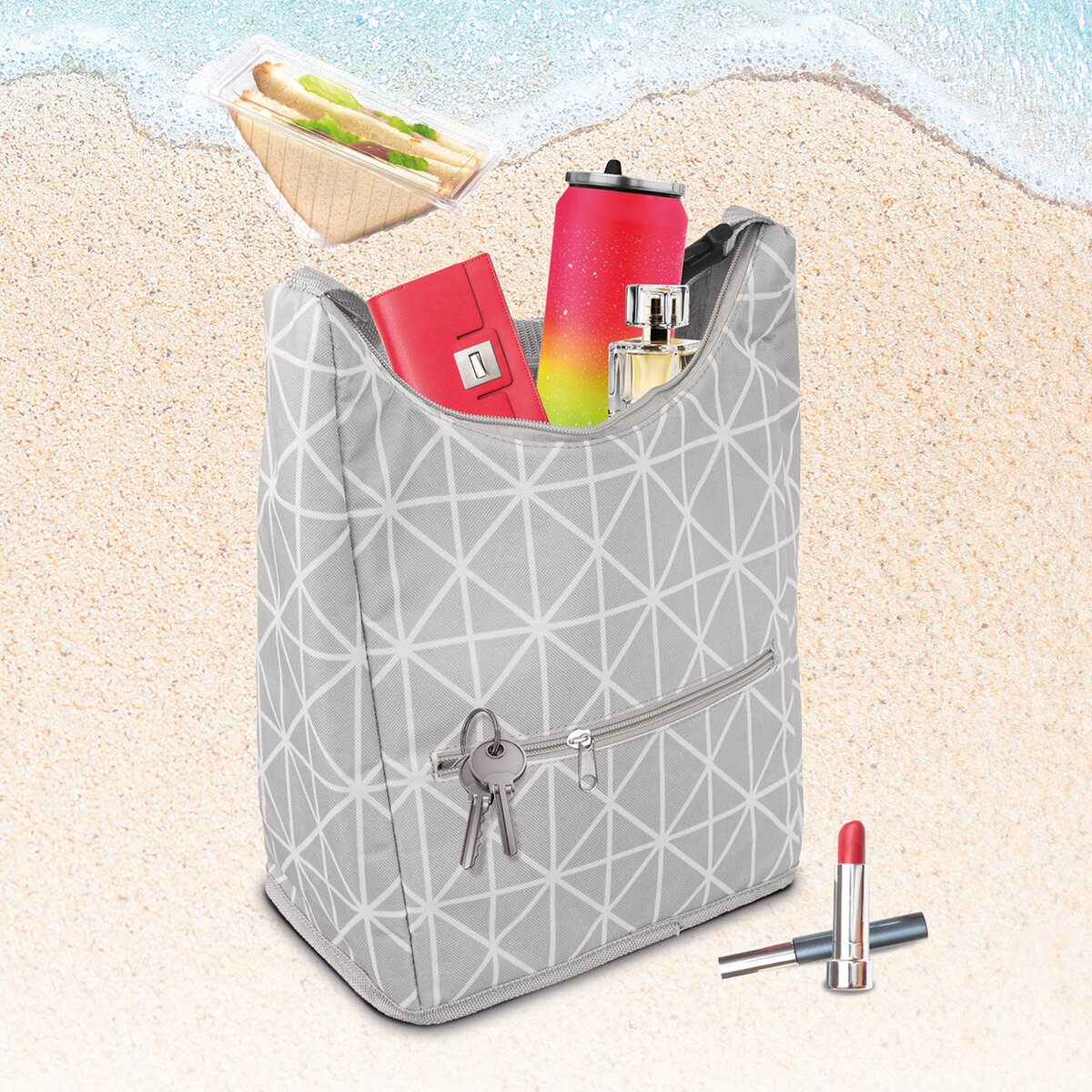 Kód produktu 731409Vzorovaná termotaška o objemu 9 l s postranní kapsou na zip.