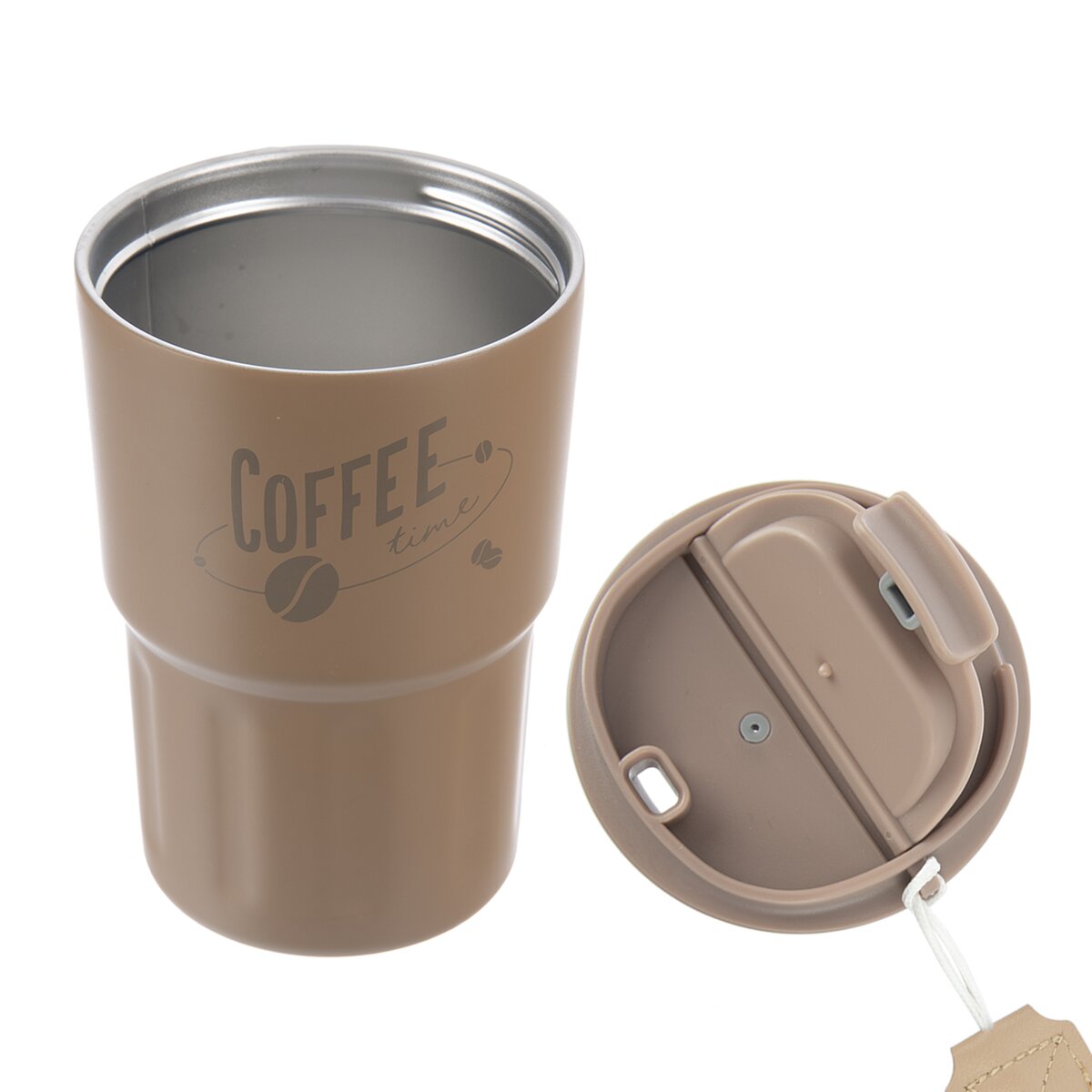 Nápis Coffee time působí stylově. Aby se vám obsah nádoby nikde nevylil, je hrnek opatřený víčkem z plastu PP na závit a uzavíratelným krytem pro otvor na pití. Po použití jej stačí umýt v teplé vodě se saponátem, opláchnout a osušit.