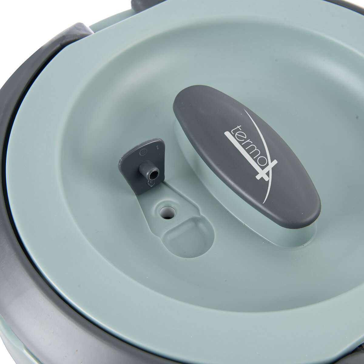 Kód produktu 128529Praktická plastová termomísa TERMO má celkový objem 2,4 l a je opatřena nerezovým vnitřkem. Lze ji snadno uzavřít víčkem na závit se sklopnými držadly, vhodnými pro pohodlnější přenášení.