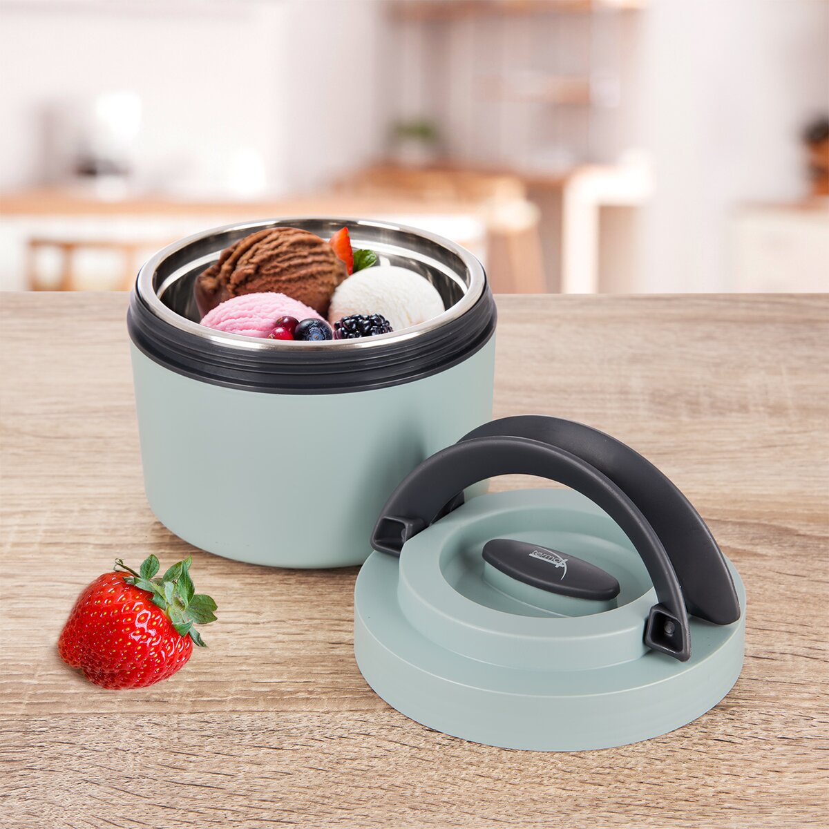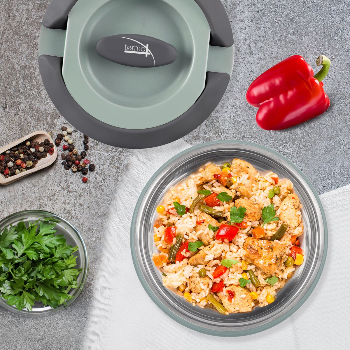 Více informacíPlastová termomísa s nerezovým vnitřkem udrží vložený pokrm po dlouhou dobu teplý nebo naopak chladný. Víčko je na závit a je opatřeno silikonovým těsněním a sklápěcími tmavě šedými uchy pro snadné a pohodlné přenášení.