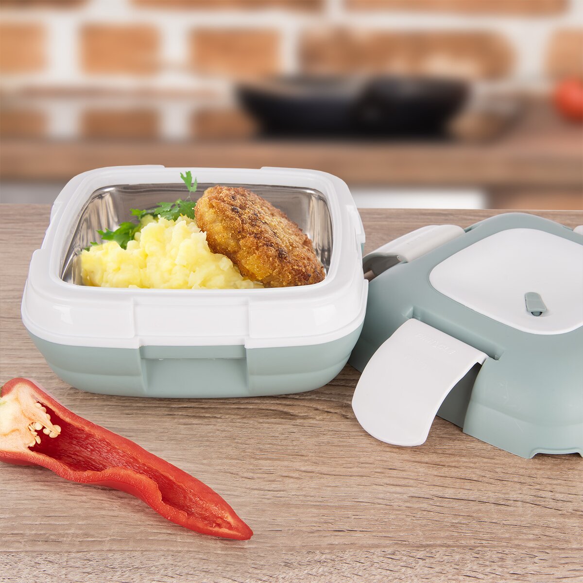 Kód produktu 128527Praktická plastová termomísa TERMO má celkový objem 0,8 l a vnější plášť je v tlumeném zeleném odstínu. Je opatřena nerezovým vnitřkem a víčkem s klipy. Slouží k uchování vložených teplých nebo studených pokrmů.