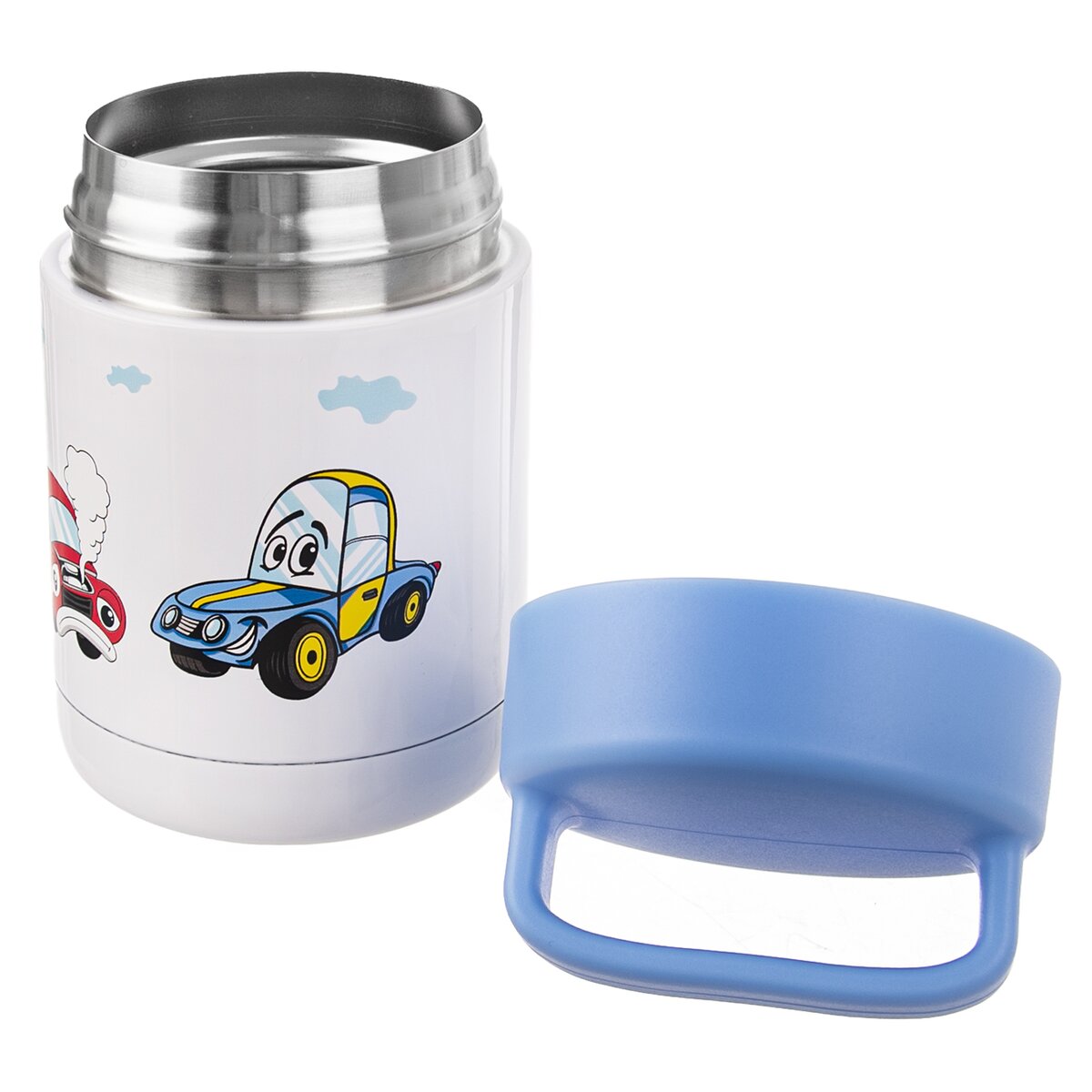 Kód produktu 125886Modrobílá termonádoba o objemu 0,48 l v dekoru AUTO. Má i plastové termo víčko, jehož součástí je ucho sloužící k přenášení nádoby.