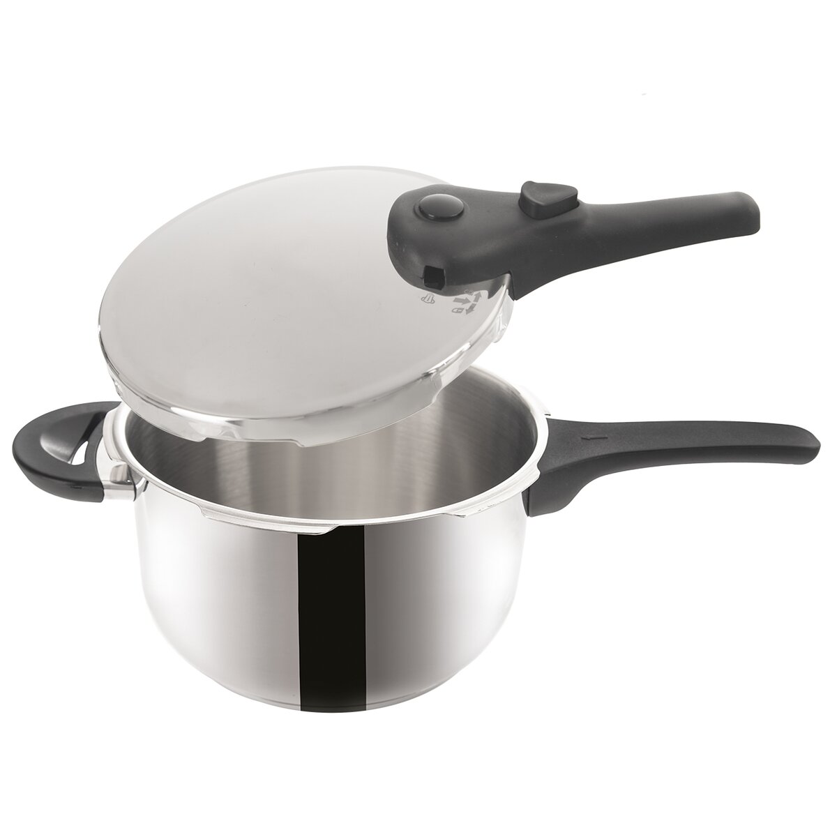 Silnostěnný hrnec o objemu 4 litry se sendvičovým dnem se uzavírá bezpečnou tlakovou poklicí, díky níž lze rychleji uvařit hovězí maso na guláš, králíka na smetaně, segedínek nebo kuře na paprice. A kdo nemá čas několik hodin táhnout masový vývar, ocení rychlou a jednoduchou přípravu.