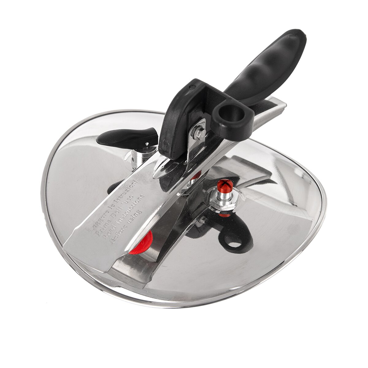 - pružné víko s ergonomickou rukojetí z bakelitu a přítlačný mechanismus pro bezpečné uzavření hrnce