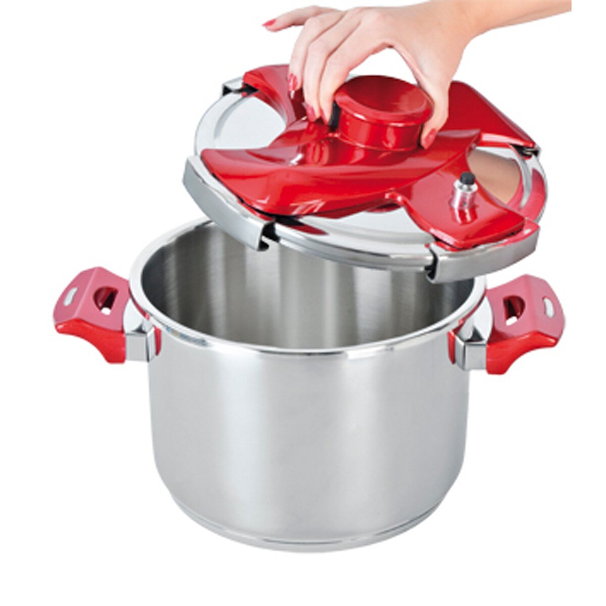 Kód produktu 111790Moderní konstrukce tlakového hrnce v unikátním designu. Tlakový hrnec z vysoce kvalitní nerezové oceli je opatřen 3-vrstvým akutermickým dnem, které díky svým vynikajícím termo - akumulačním vlastnostem spoří výrazně tepelnou energii i čas strávený při přípravě pokrmů. Ideální nádobí pro přípravu silných masových nebo zeleninových vývarů, oblíbených gulášů, ragú, veškerého masa vyžadujícího delší úpravu, luštěnin… Tlakový hrnec je opatřen víkem se speciální konstrukcí otevírání a zavírání, bezpečnostním a pracovním ventilem pro upouštění tlaku. Materiál: vysoce kvalitní nerezová ocel. Vhodný na všechny typy spotřebičů včetně indukce, vhodný do myčky. Rozměry: objem 5 l, pr. 23 cm, v. 14,5/20,5 cm. Náhradní těsnění v naší nabídce 180519.