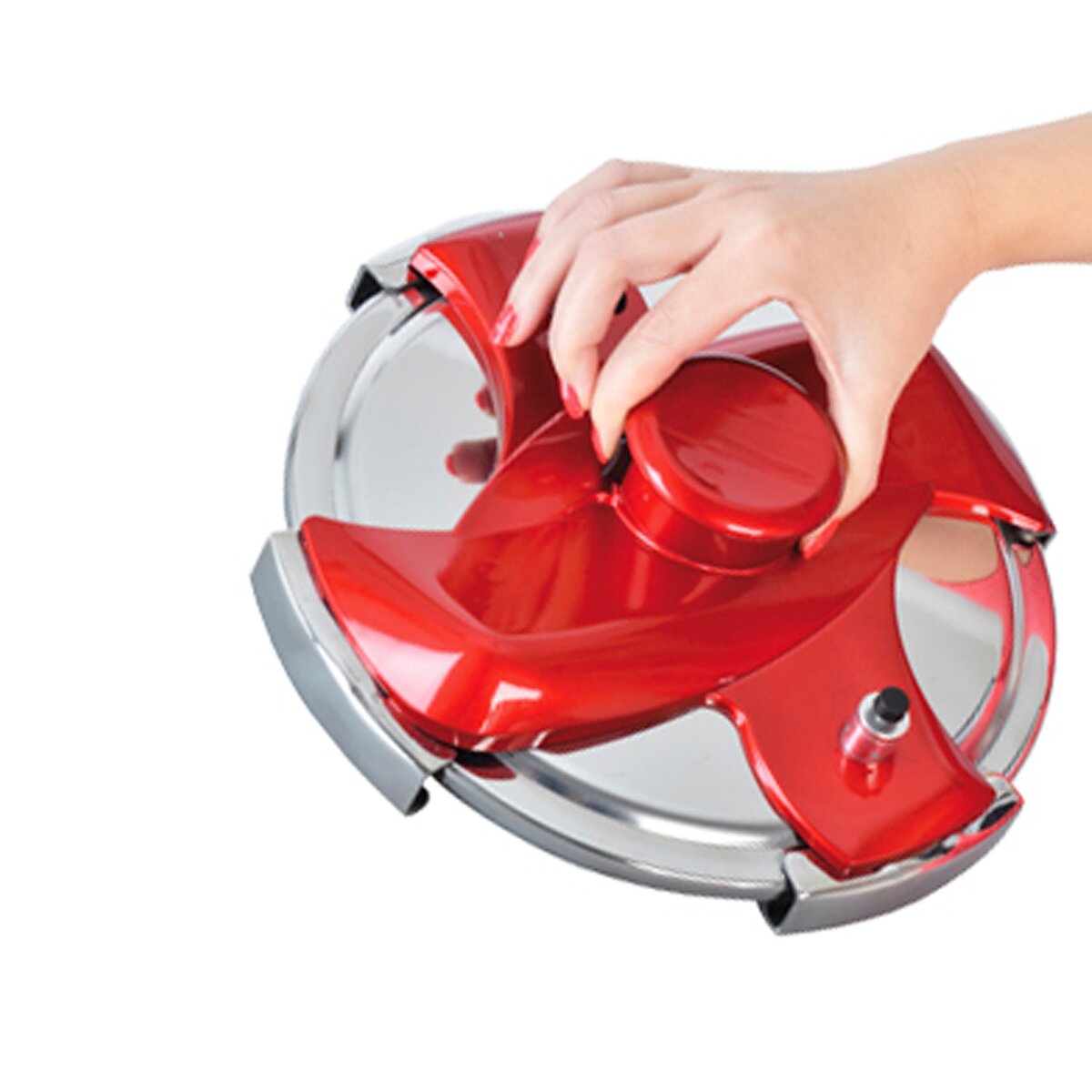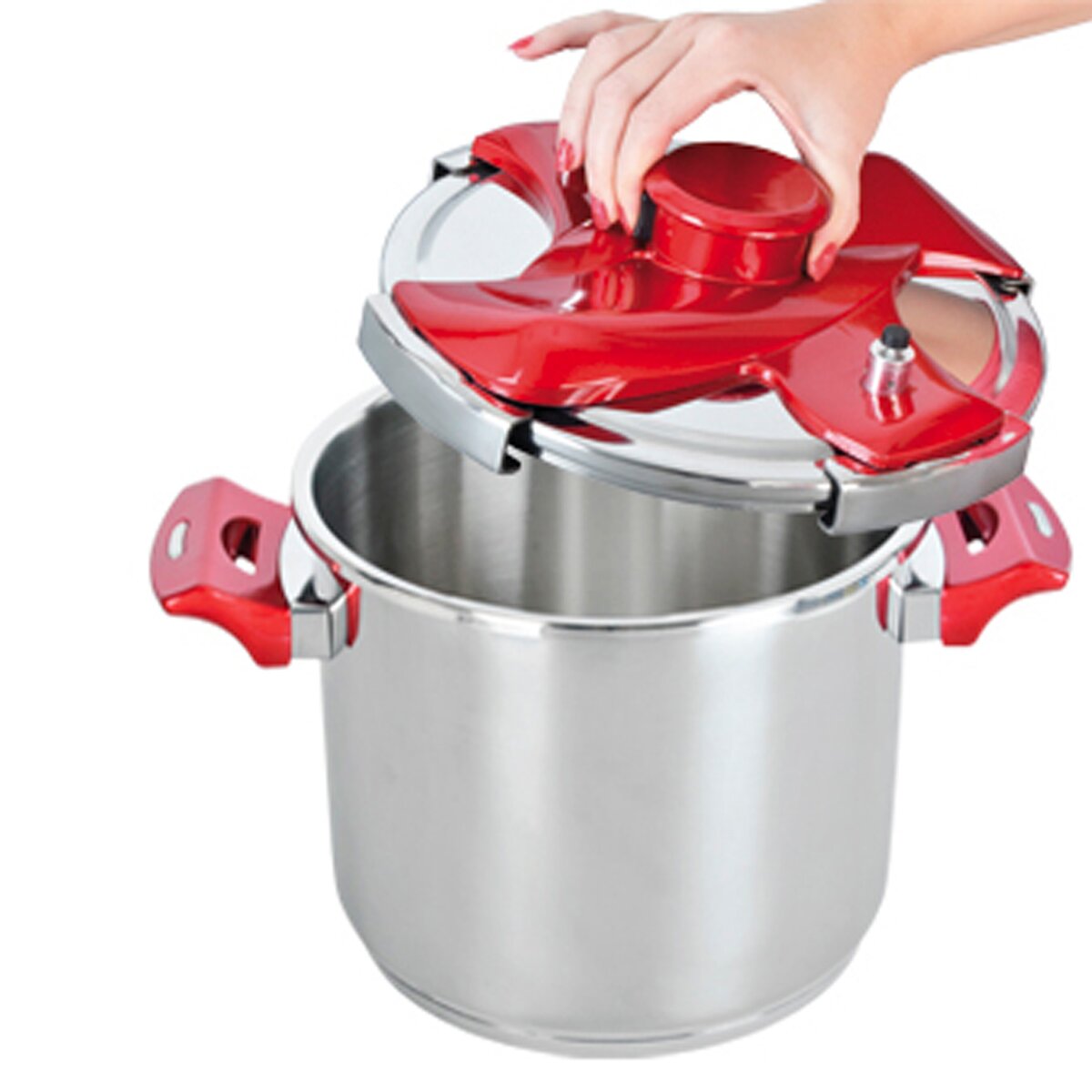 Kód produktu 111791Moderní konstrukce tlakového hrnce v unikátním designu. Tlakový hrnec z vysoce kvalitní nerezové oceli je opatřen 3-vrstvým akutermickým dnem, které díky svým vynikajícím termo - akumulačním vlastnostem spoří výrazně tepelnou energii i čas strávený při přípravě pokrmů. Ideální nádobí pro přípravu silných masových nebo zeleninových vývarů, oblíbených gulášů, ragú, veškerého masa vyžadujícího delší úpravu, luštěnin… Tlakový hrnec je opatřen víkem se speciální konstrukcí otevírání a zavírání, bezpečnostním a pracovním ventilem pro upouštění tlaku. Materiál: vysoce kvalitní nerezová ocel. Vhodný na všechny typy spotřebičů včetně indukce, vhodný do myčky. Rozměry: objem 7 l, pr. 23 cm, v. 17,5/23,5 cm. Náhradní těsnění v naší nabídce 180519.