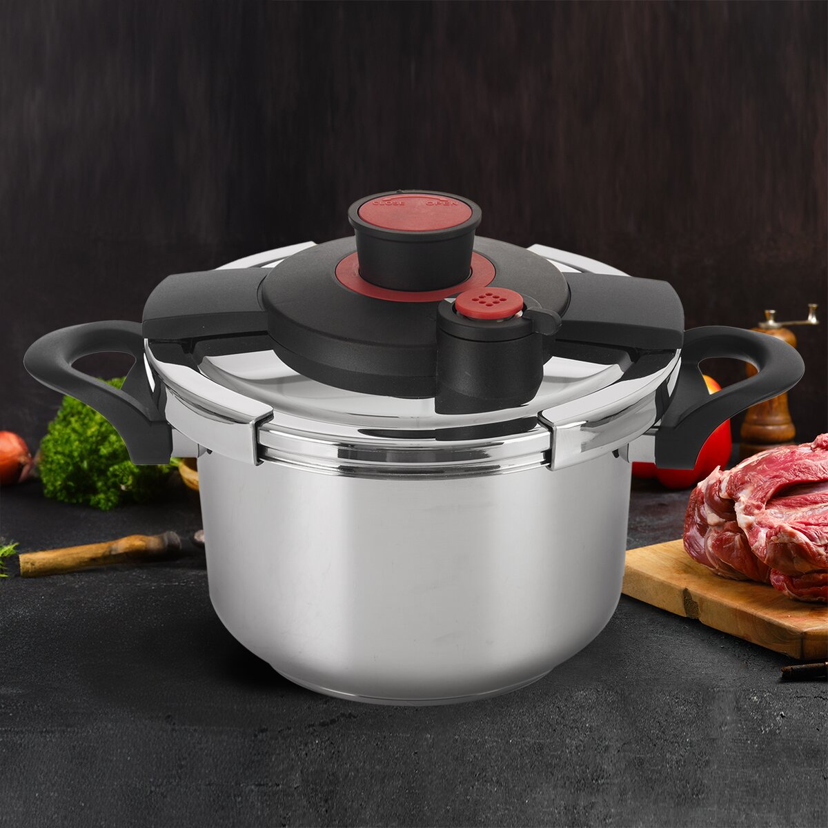 Silnostěnný hrnec se sendvičovým dnem se uzavírá bezpečnou tlakovou poklicí, díky níž lze rychleji uvařit hovězí maso na guláš, králíka na smetaně, segedínek, zvěřinu nebo vepřové koleno. A kdo nemá čas několik hodin táhnout masový vývar, ocení rychlou a jednoduchou přípravu. Prostě rychlovka z papiňáku.