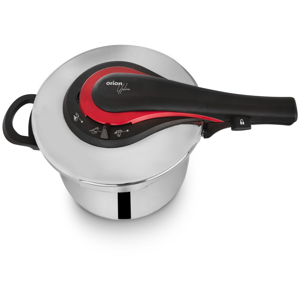 Kód produktu 113186Designový tlakový hrnec UPLINE o objemu 6 l s bajonetovým uzavíráním a bezpečnostními prvky, vhodný pro rychlé vaření na všech typech sporáků, včetně indukce.