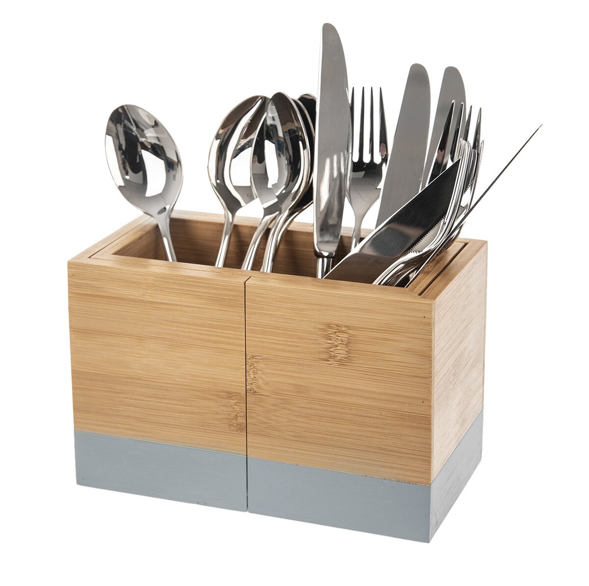 Kód produktu 122984Designový hranatý bambusový stojan je určen k uložení kuchyňského náčiní, příborů, ale i kancelářských a kosmetických potřeb. Lze jej vysunout a z jednoho oddílu tak vzniknou tři sektory.