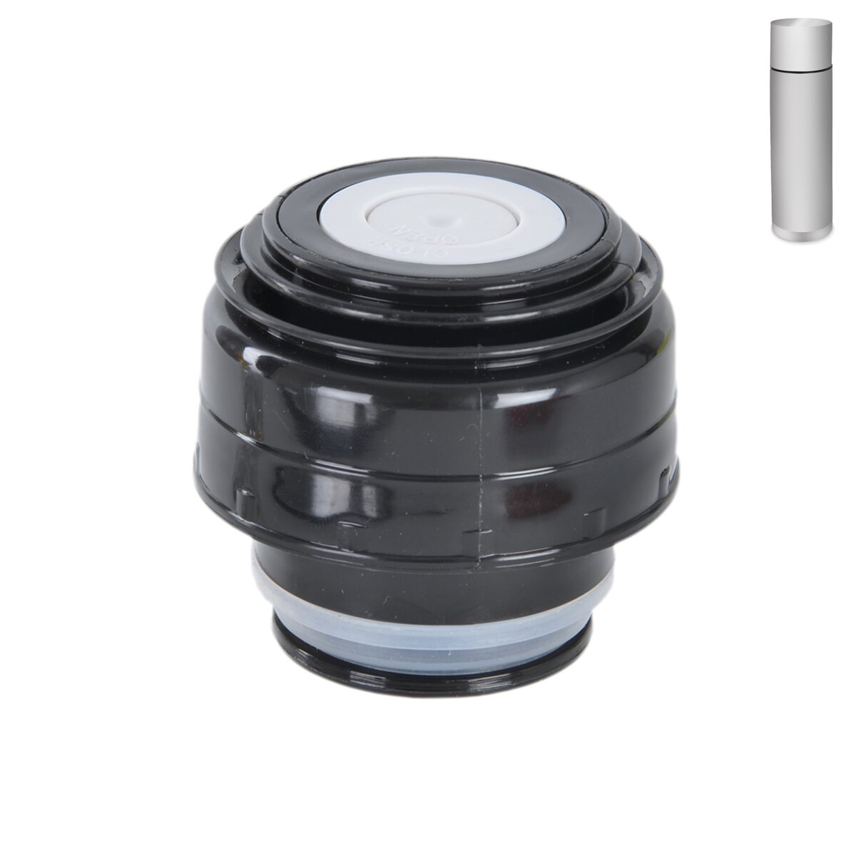 Velký uzávěr pro termosky o objemu 1 l, vyrobený z plastu a opatřený silikonovým těsněním, které zajistí, aby nedošlo k nechtěnému vylití obsahu termosek.