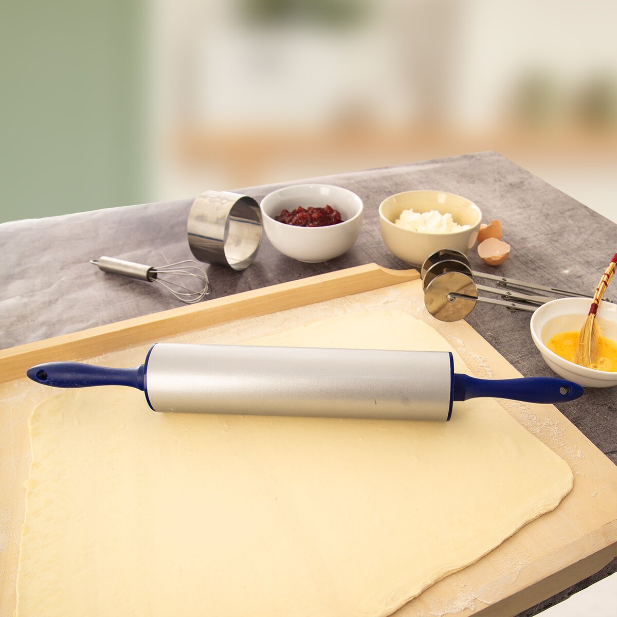 Rukojeti dobře padnou do ruky a váleček bude lehce klouzat po povrchu těsta.
