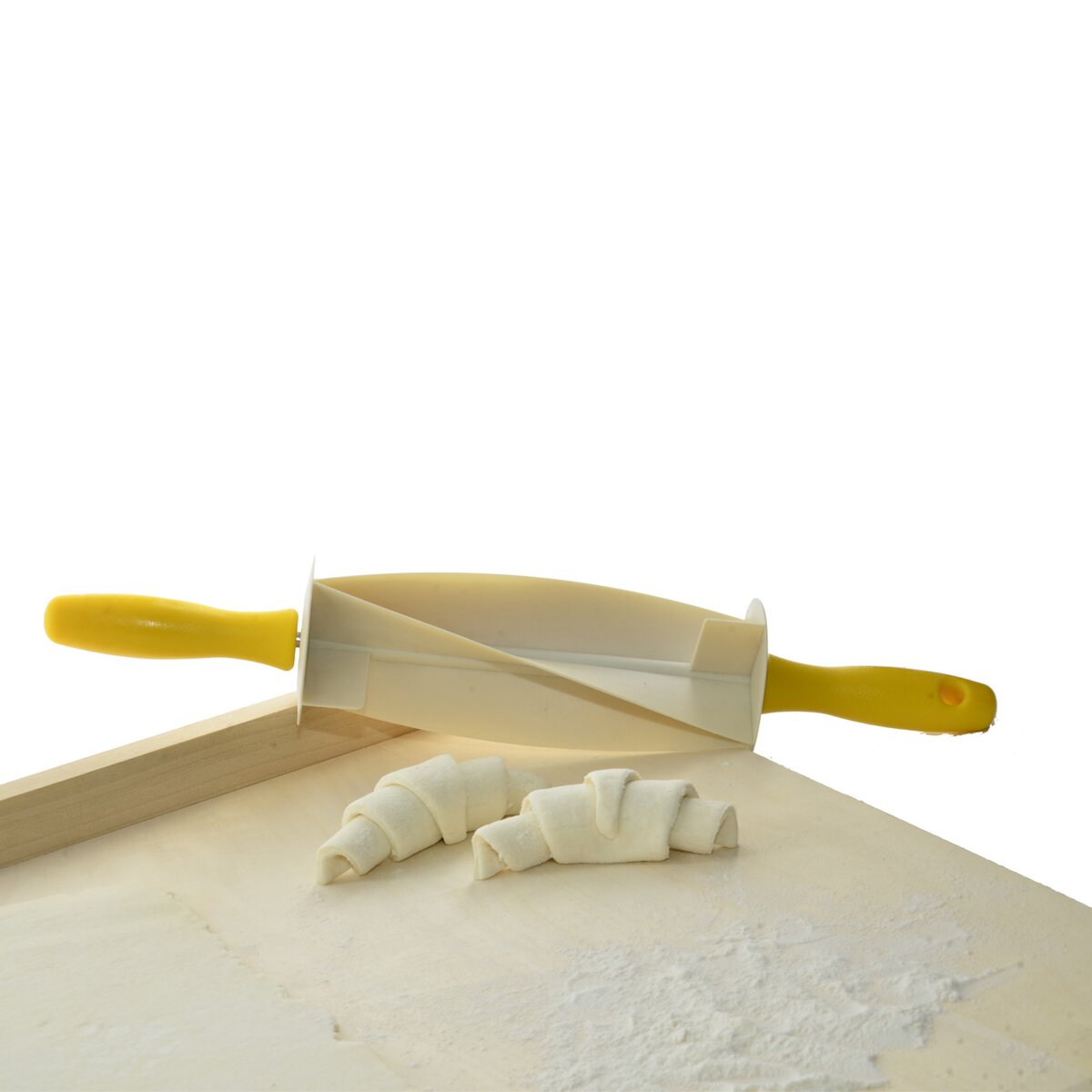 Váleček, který Vám pomůže při výrobě sladkých i slaných croasantů, plněných rohlíků. Jednoduše z vyváleného plátu těsta vykrájíte potřebný tvar pomocí válečku, který pak stočíte směrem ke špičce. Můžete těsto plnit na sladko i na slano, nabízíme pár receptů na balení výrobku. Materiál: plast. Rozměry: š. válečku 37 cm, vykrájíte tvary d. 17 cm, š. 10 cm. Není vhodný do myčky na nádobí.