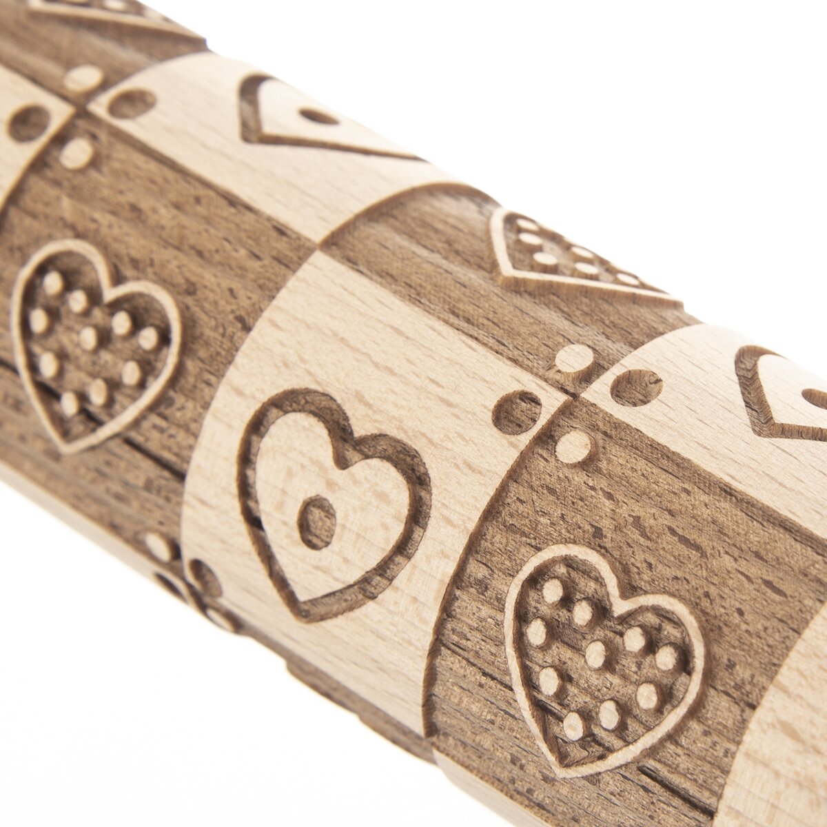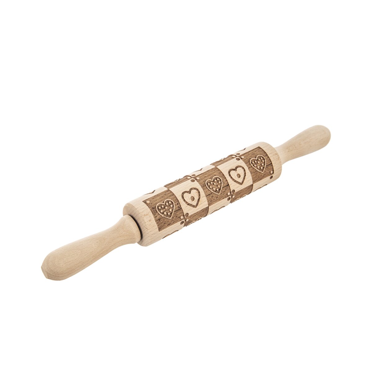 Kód produktu 141257Dekorativní, ale i praktický bukový váleček s plastickým vzorem srdcí se skvěle hodí při dekorování těsta na domácí sušenky nebo potahovacích hmot a marcipánu.