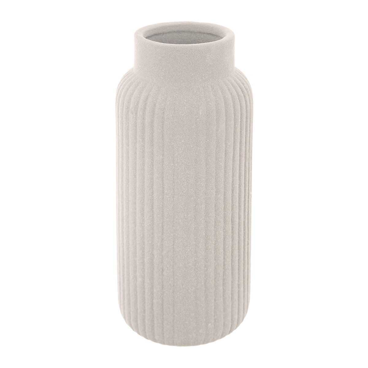 Kód produktu 820184Smetanová porcelánová váza s hrubou strukturou a podélným žebrováním má výšku 24,5 cm a je vhodná na řezané i suché květiny nebo dekorativní traviny a větvičky.