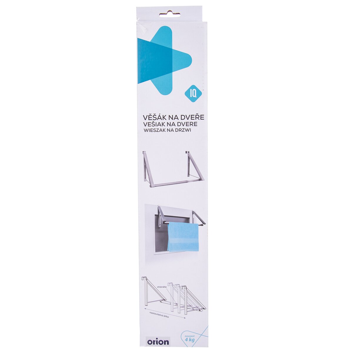 Lze jej jednoduše nastavit do tří poloh a zavěsit na hranu dveří nebo skříňky o tloušťce do 4 cm. Podle potřeby je možné ho sklopit. Nosnost 4 kg.