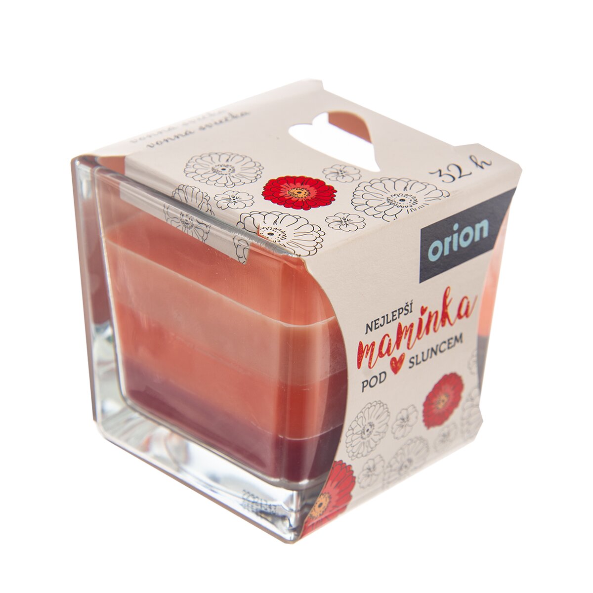 Kód produktu 822241Tříbarevná aroma svíčka NEJLEPŠÍ MAMINKA POD SLUNCEM s vůní kaktusového květu a s délkou hoření cca 32 hodin.