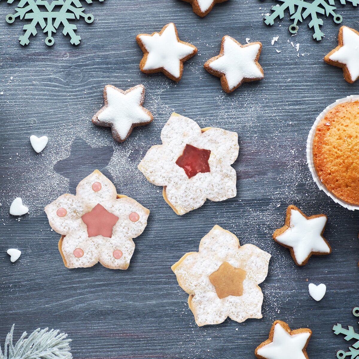 Oblíbené linecké cukroví slepované marmeládou, oříškovým i karamelovým krémem nebo čokoládovou polevou jednoduše vykrojíte s pomocí sady vykrajovaček ve tvaru lilie.