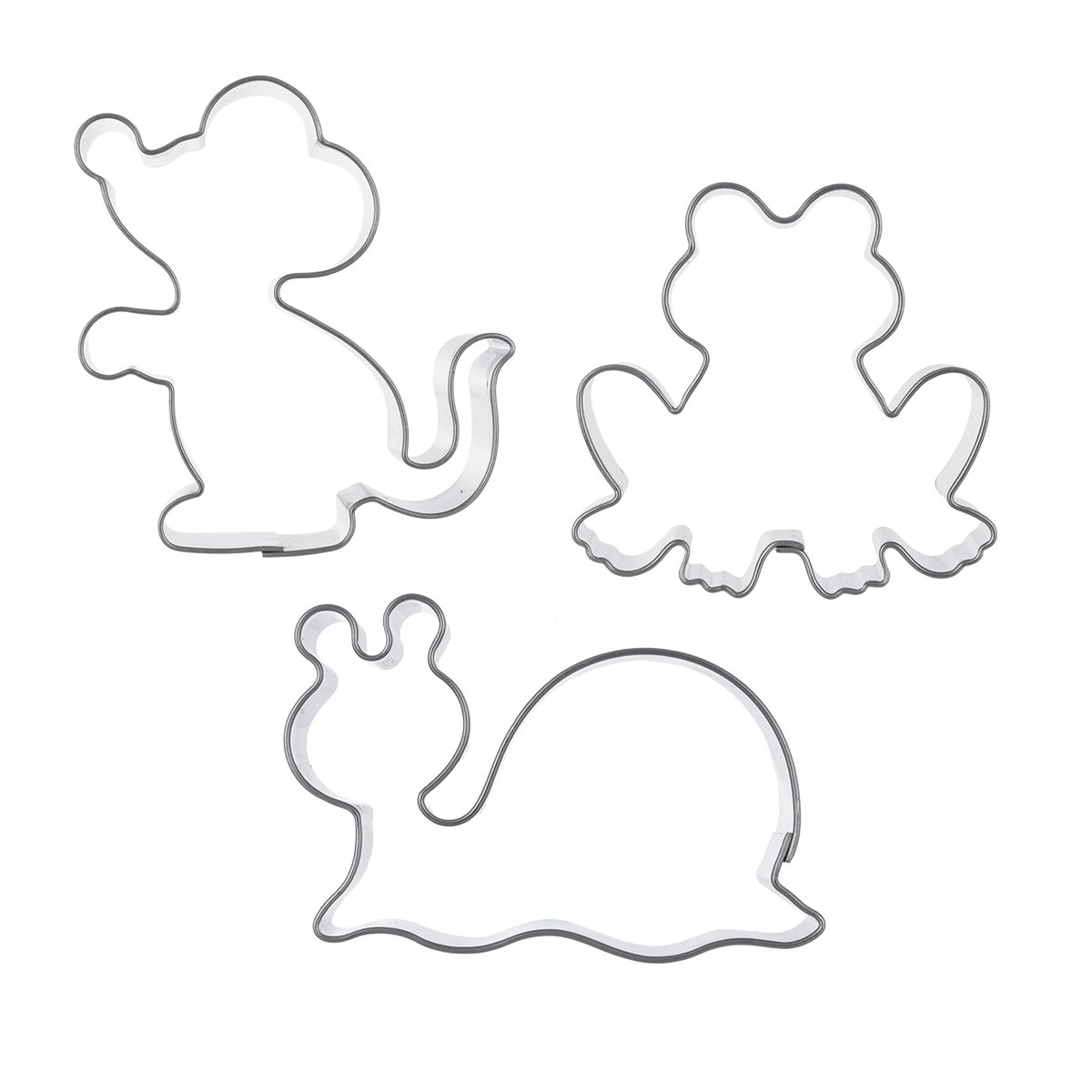 Kód produktu 132627Sada 3 nerezových vykrajovaček ve tvaru myšky, žabky a šnečka je určena k vykrajování perníčků, sušenek, marcipánu i pro jiné kreativní práce.