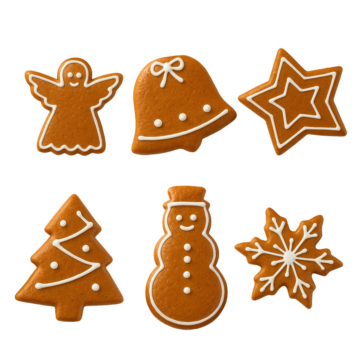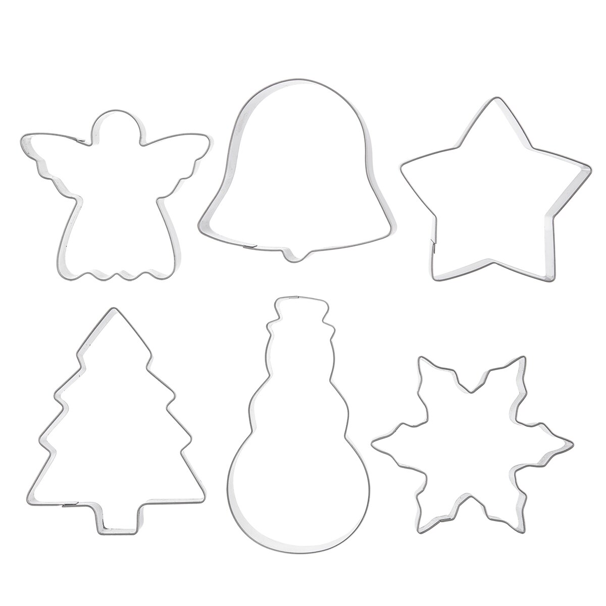 Kód produktu 132610Sada 6 různých vánočních tvarů - sněhulák, vločka, anděl, zvonek, hvězda a stromeček pro vykrajování perníčků, sušenek i pro jiné kreativní práce.