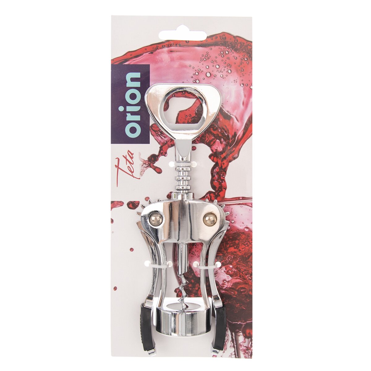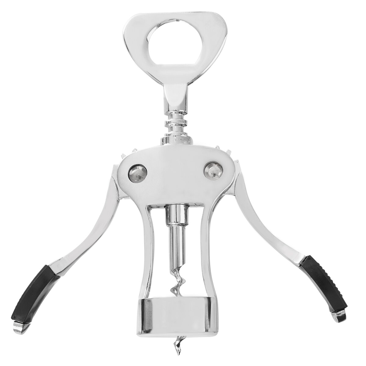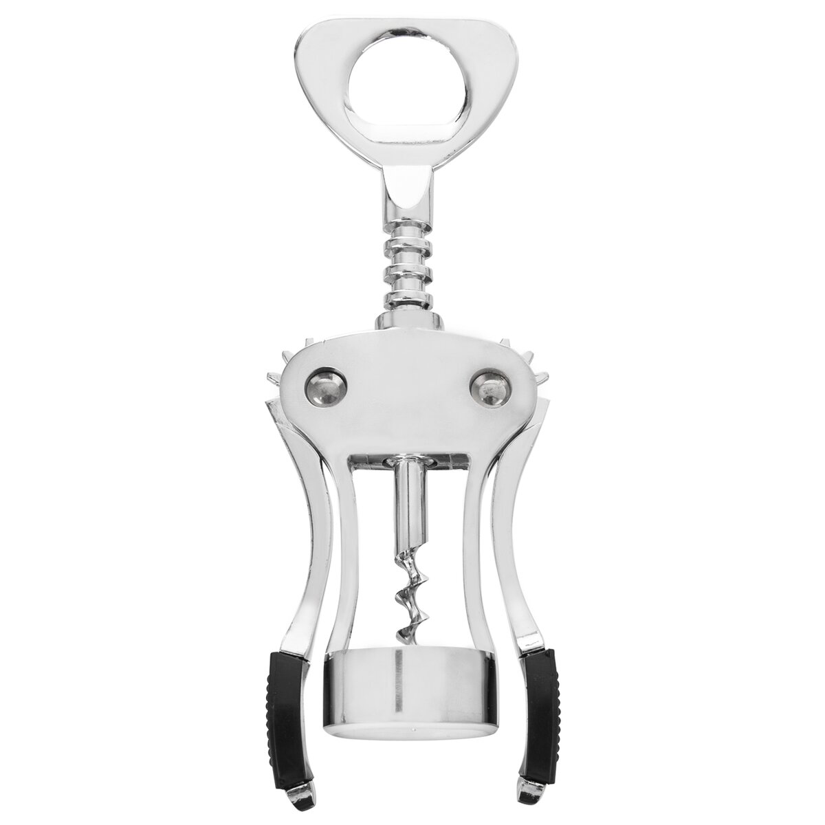 Kód produktu 140836Kovová vývrtka na víno s otvírákem láhví na korunkové uzávěry.