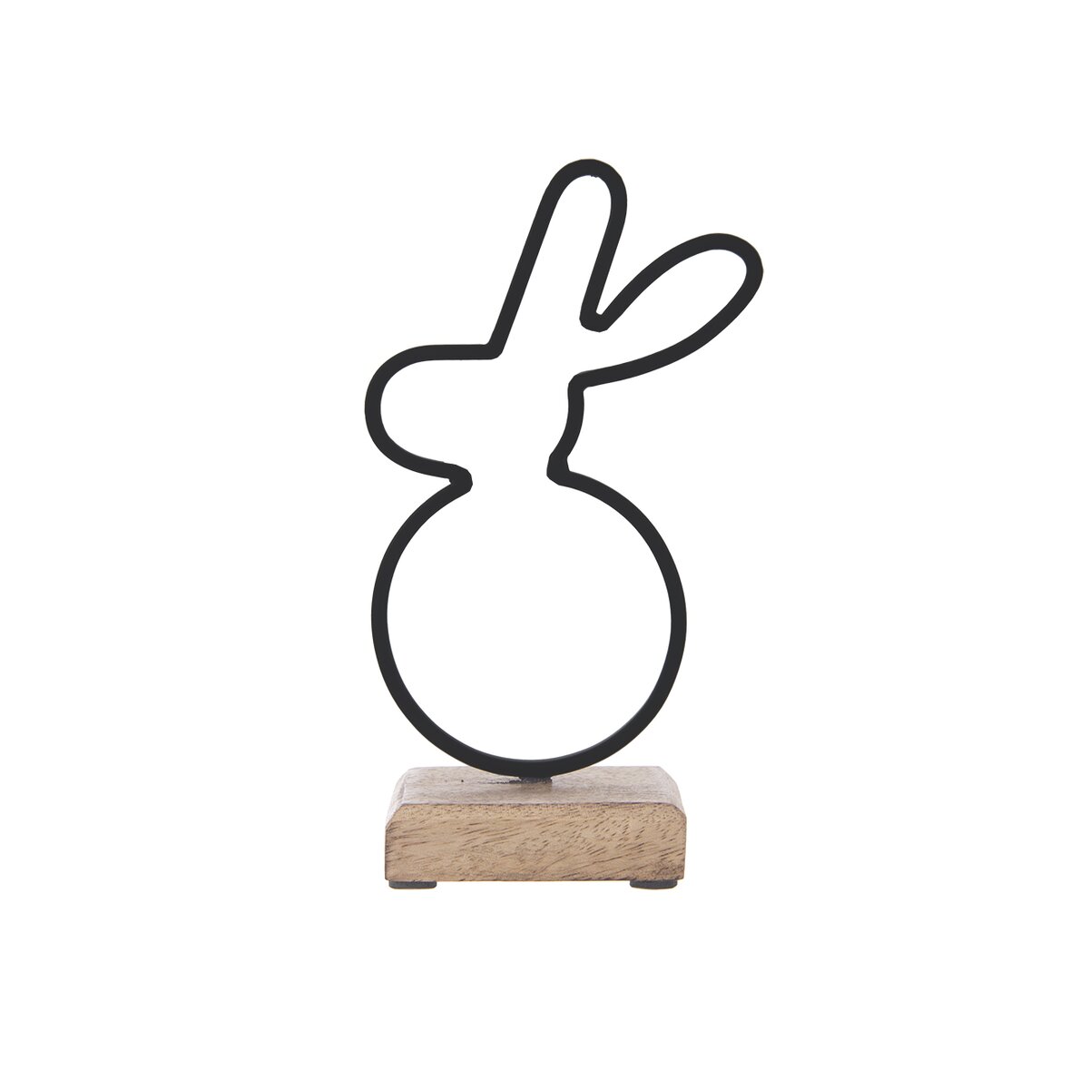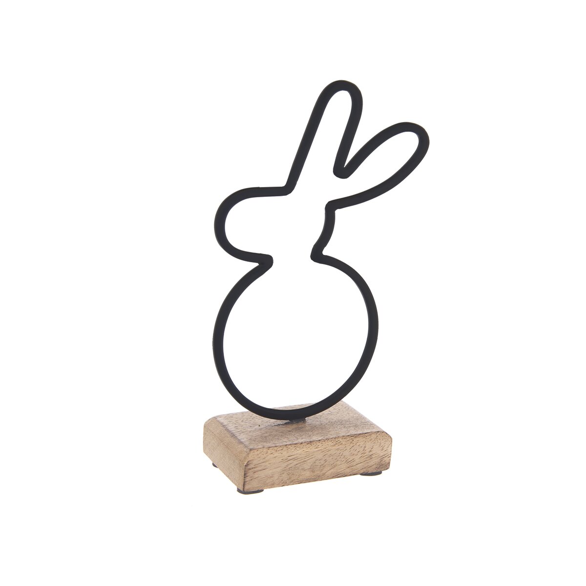 Kód produktu 351836Dekorace z černého drátu ve tvaru zajíčka a podstavce z mangového dřeva je krásným dárkem i stylovou drobností do interiéru.