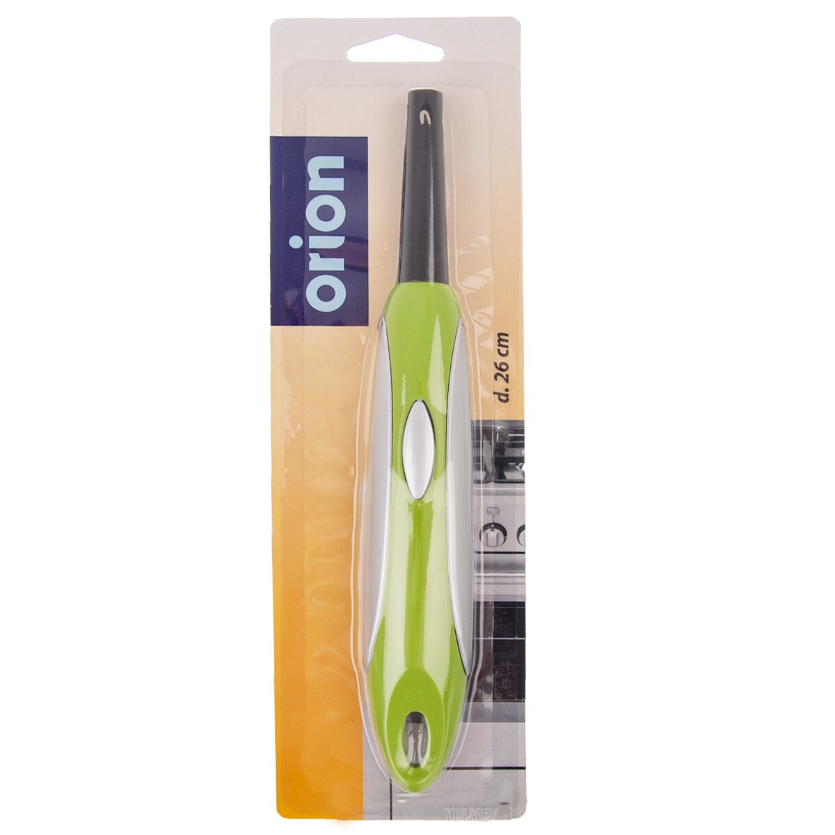 Sháníte zapalovač do kuchyně? Tento piezoelektrický zapalovač je určený na plynové sporáky a hořáky. K napájení je potřeba jedna 1,5 V AA baterie, která není součástí balení. Celková délka zapalovače je 26 cm.