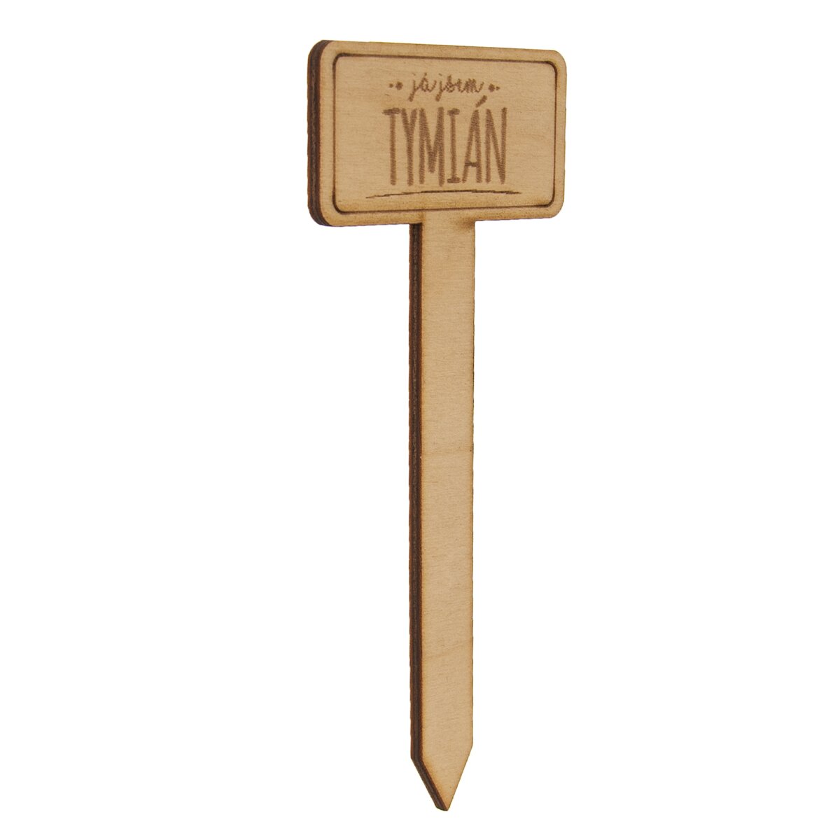 Kód produktu 351827Dřevěný zápich do květináče nebo záhonku velikosti 14x6 cm s nápisem TYMIÁN.