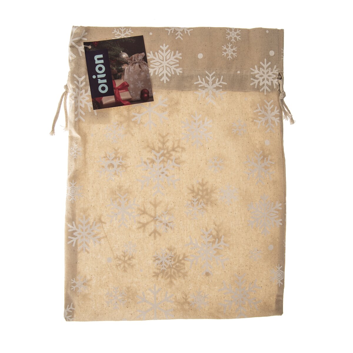 Látkový sáček s dekorem vloček je určen k uložení dárků, např. originálních hrnečků, svíček, kosmetiky nebo na tzv. měkké dárky, které se špatně balí do balicího papíru. A na rozdíl od papíru jej lze používat opakovaně.